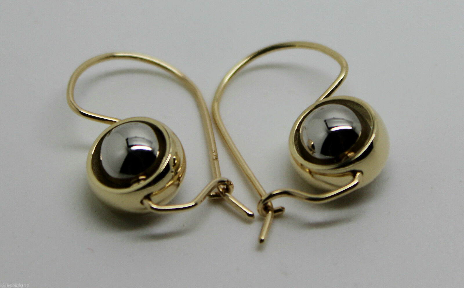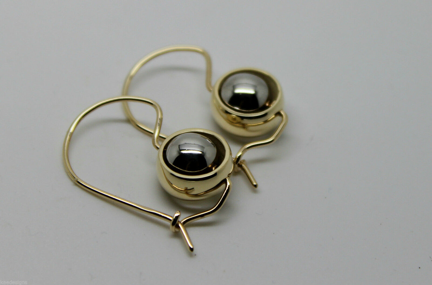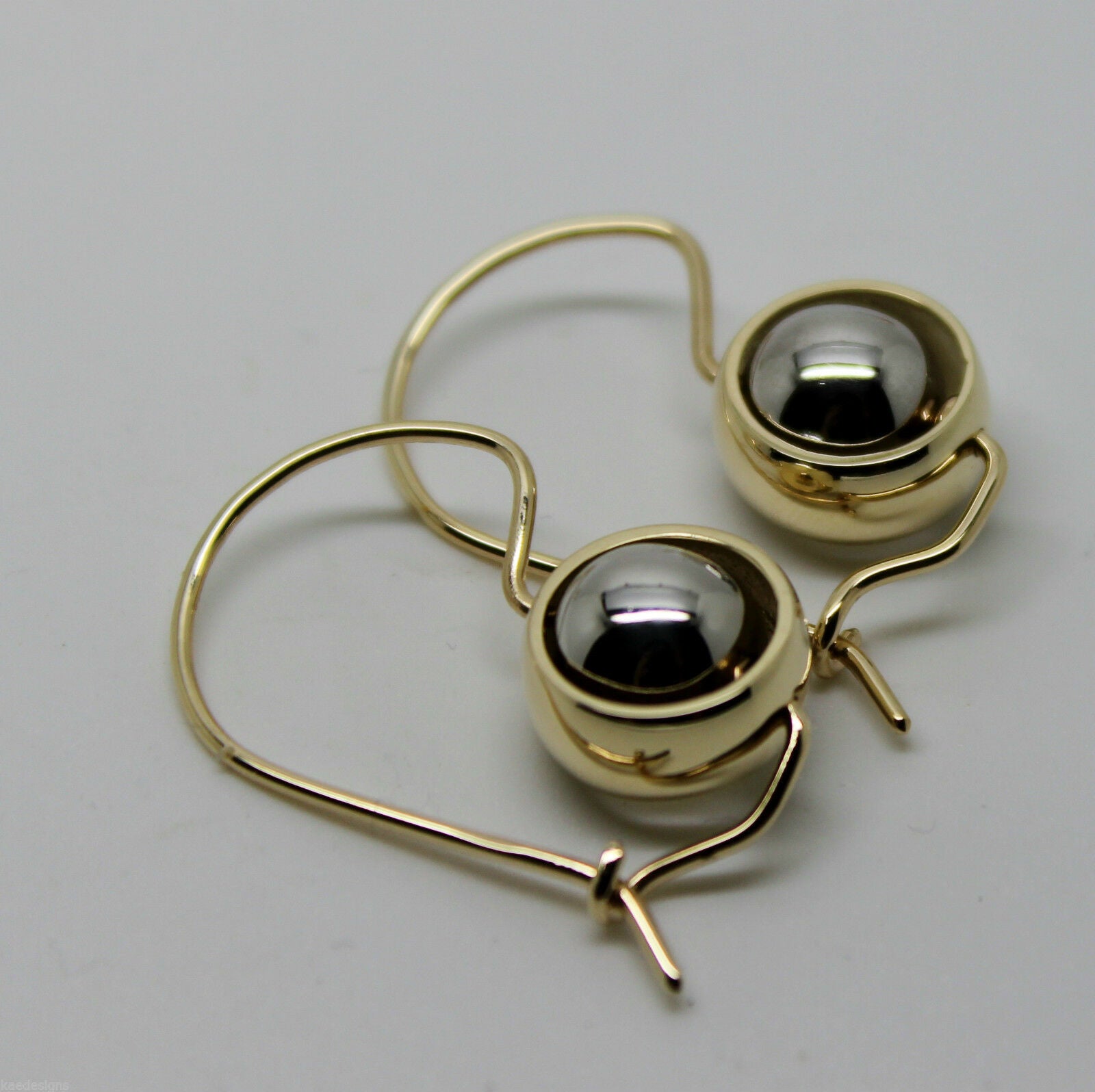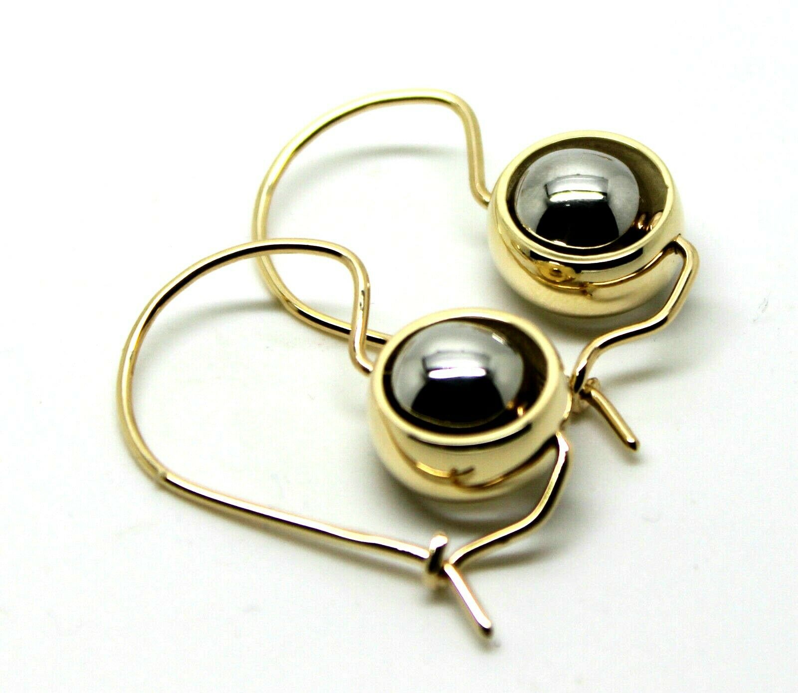 Genuine 9ct 9kt White & Yellow Gold Spinning Belcher Ball Drop Earrings