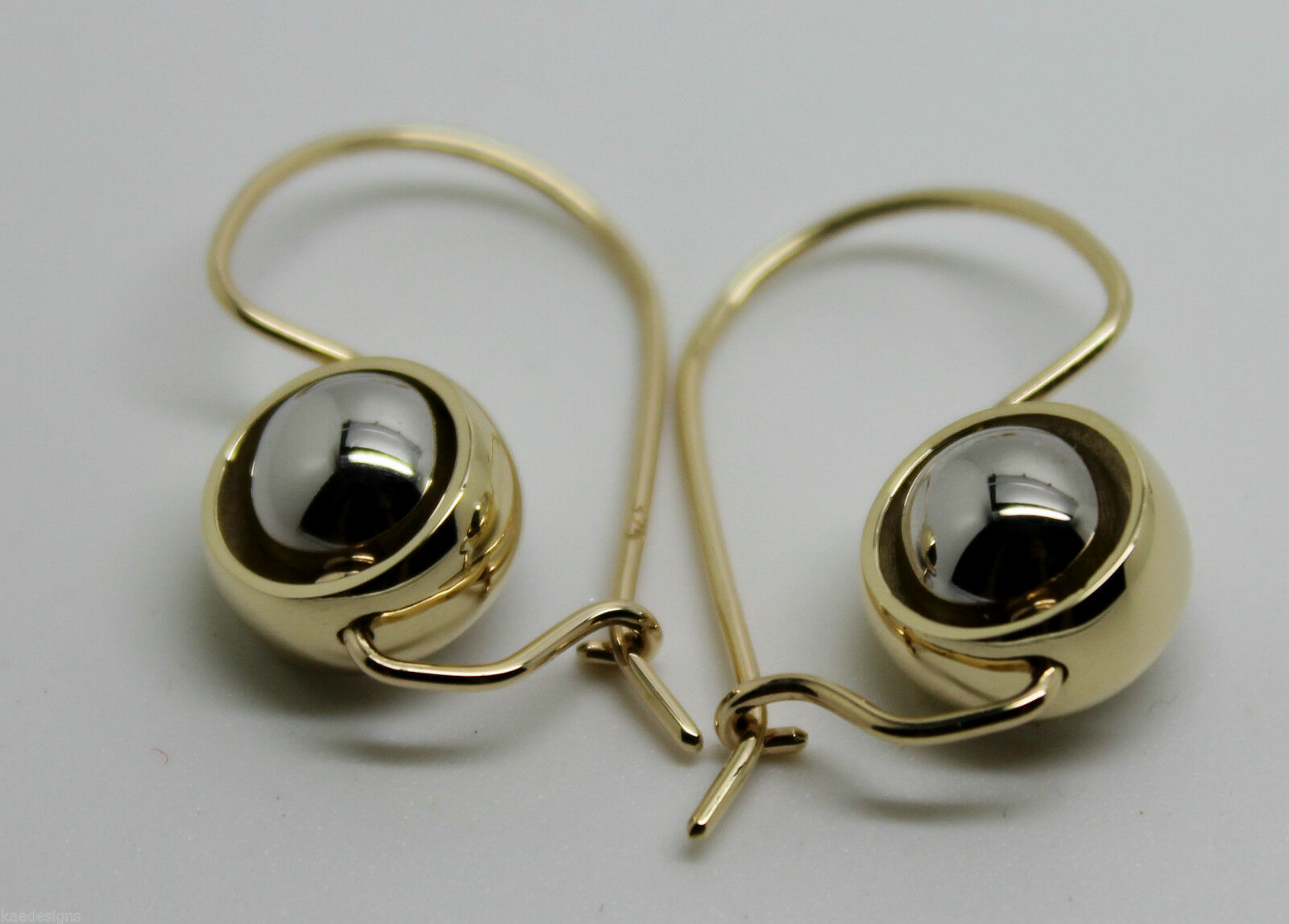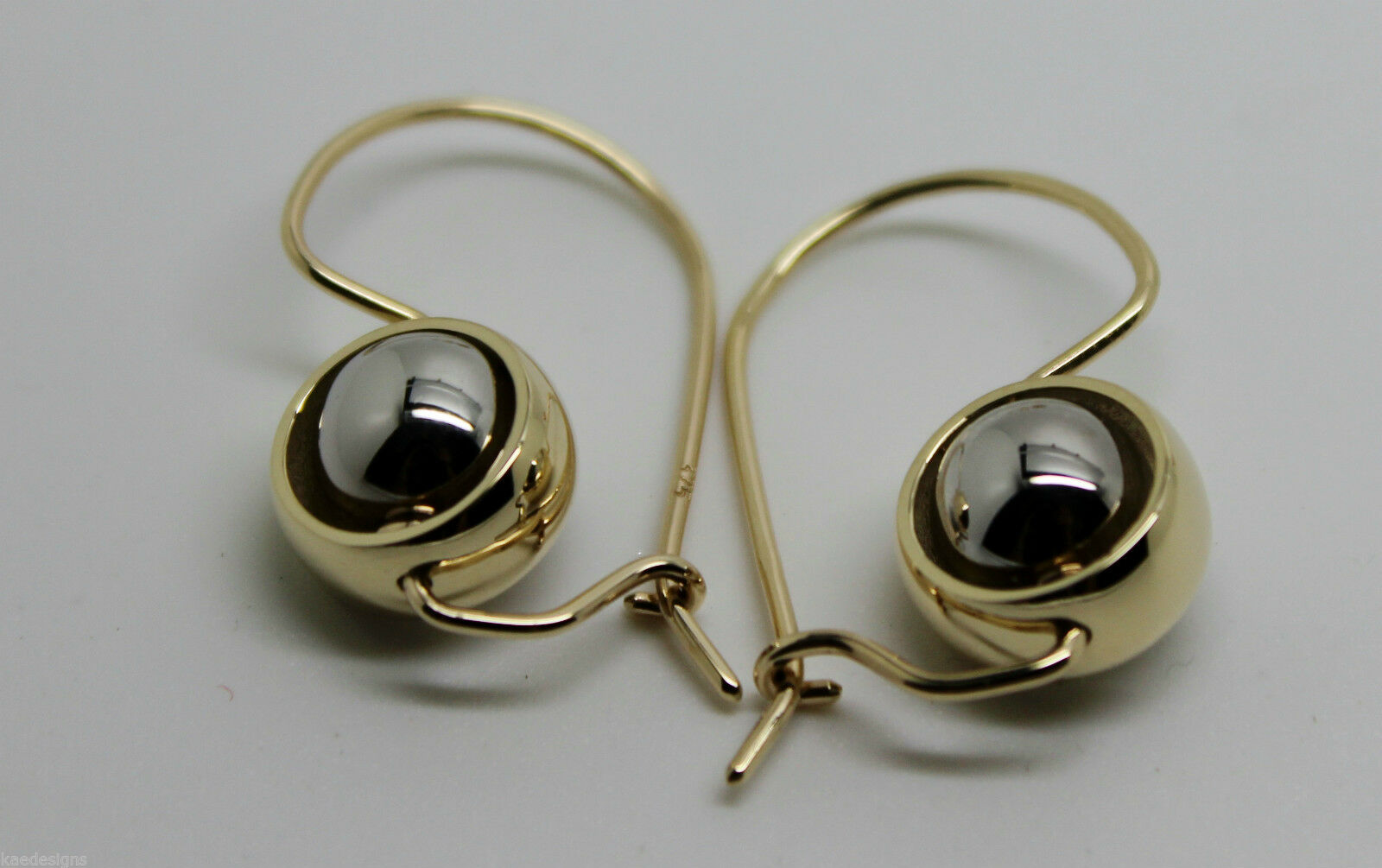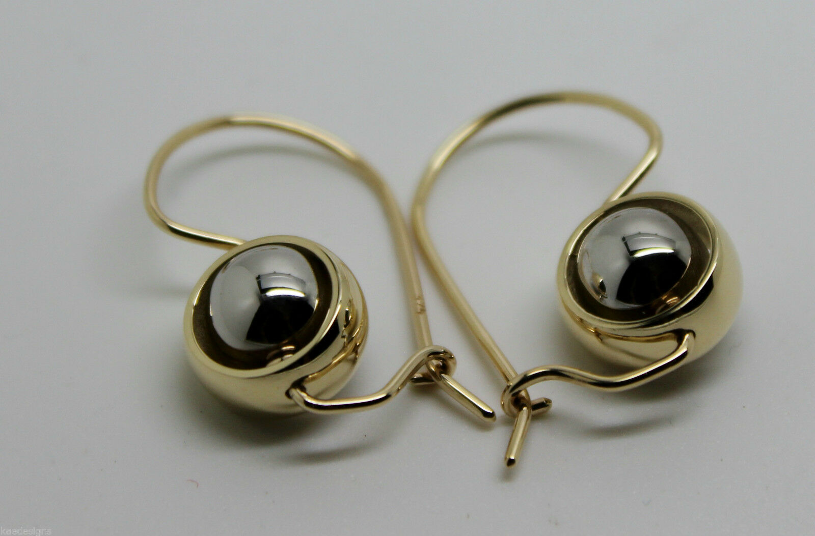 Genuine 9ct 9kt White & Yellow Gold Spinning Belcher Ball Drop Earrings