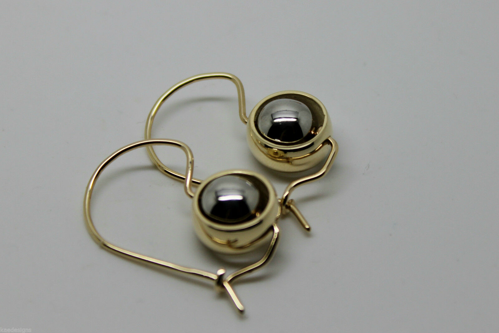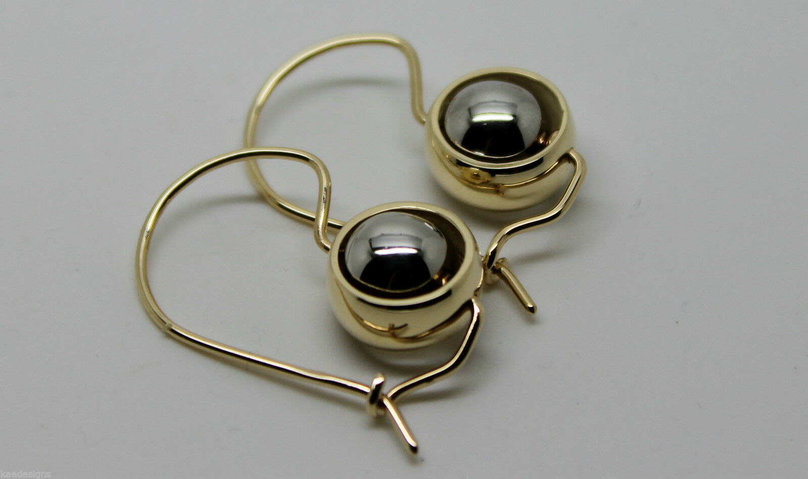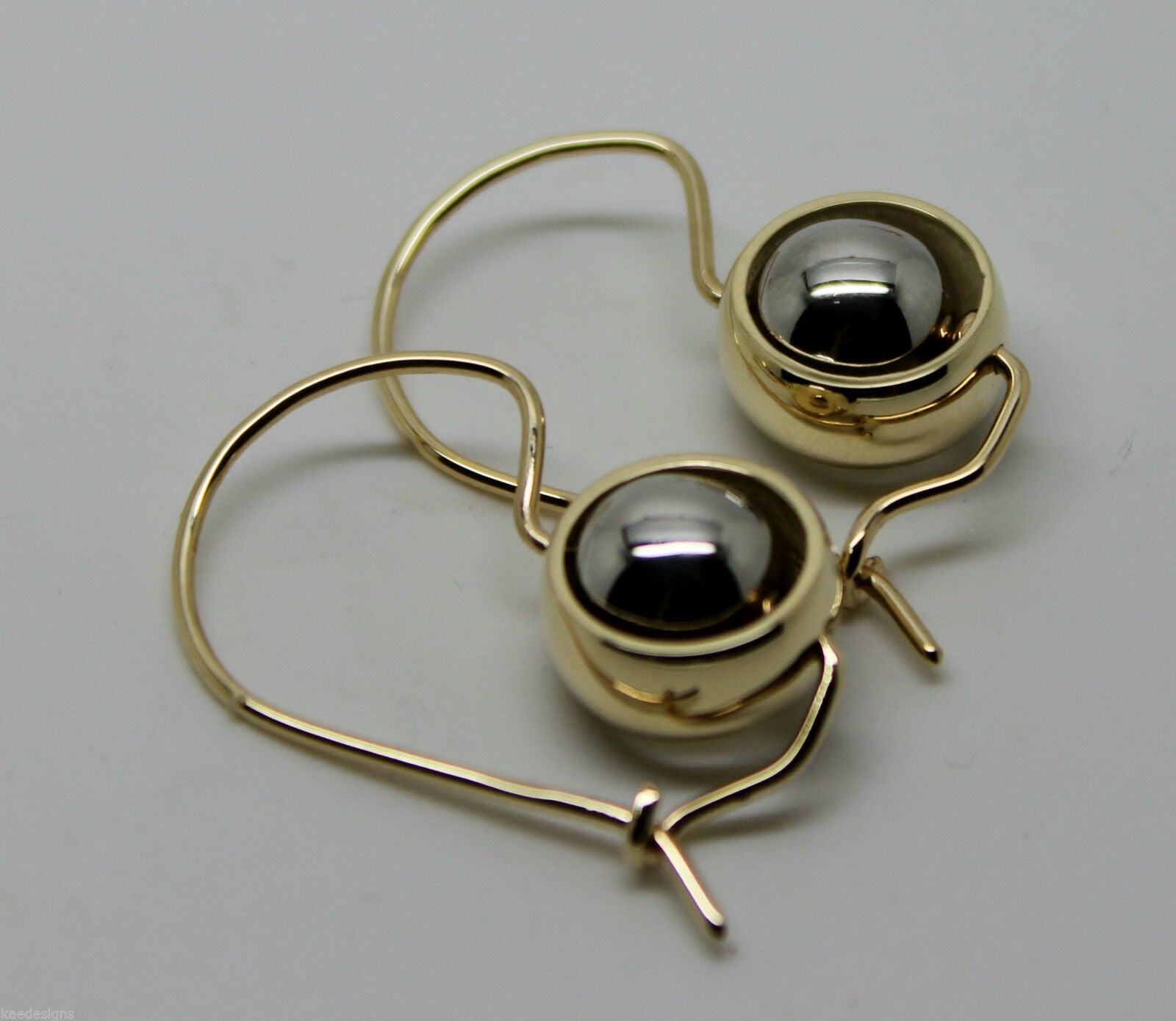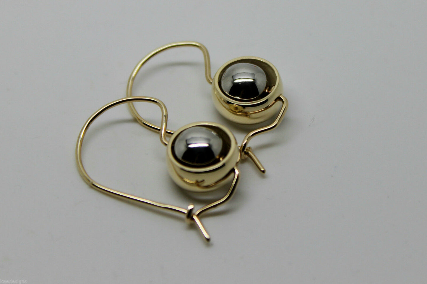 Genuine 9ct 9kt White & Yellow Gold Spinning Belcher Ball Drop Earrings