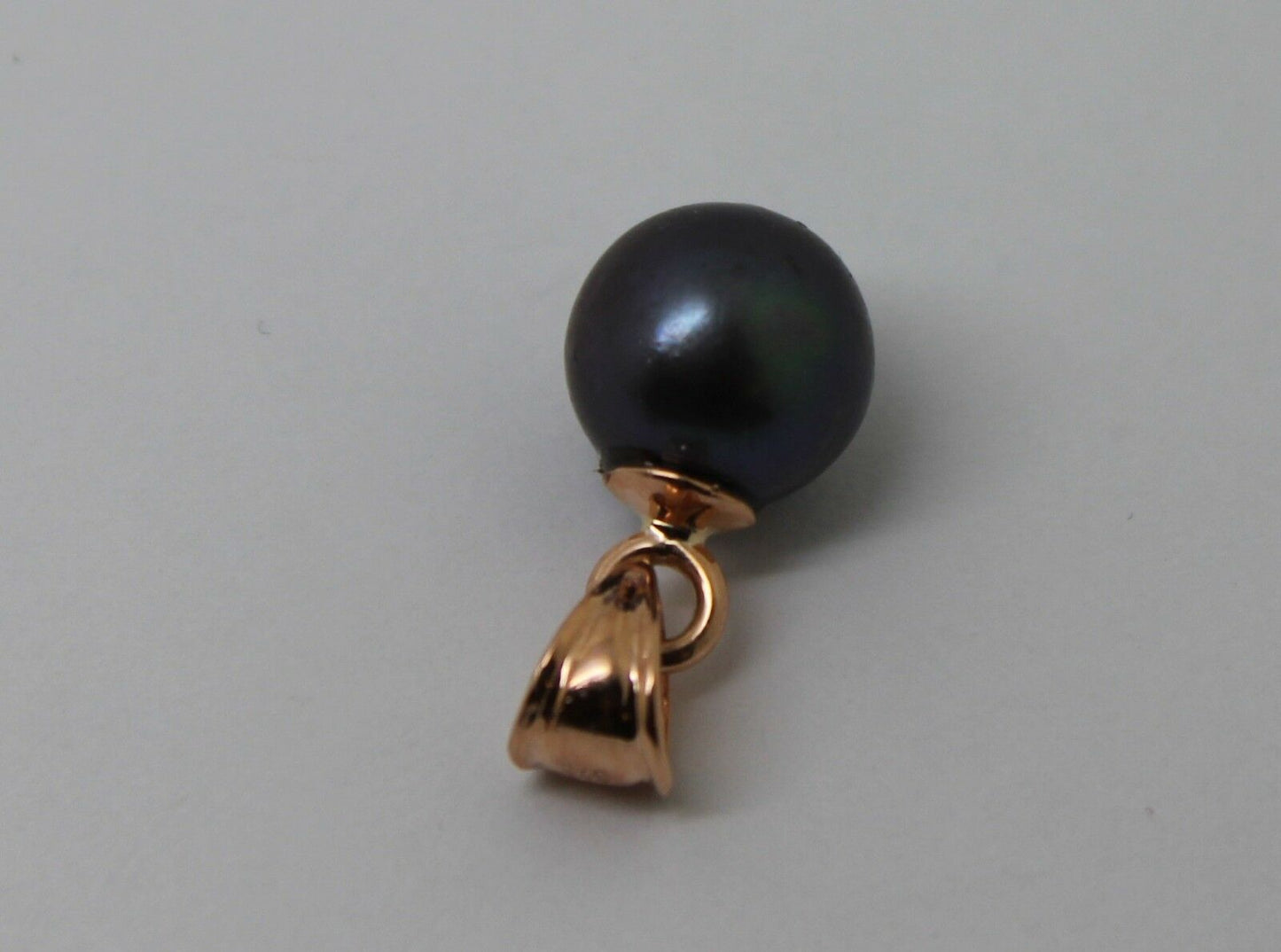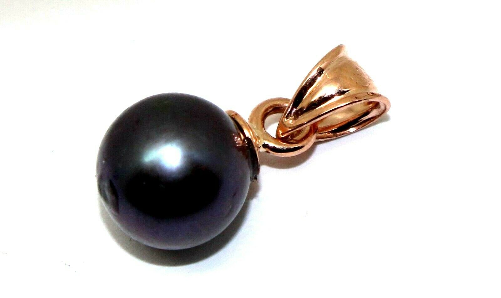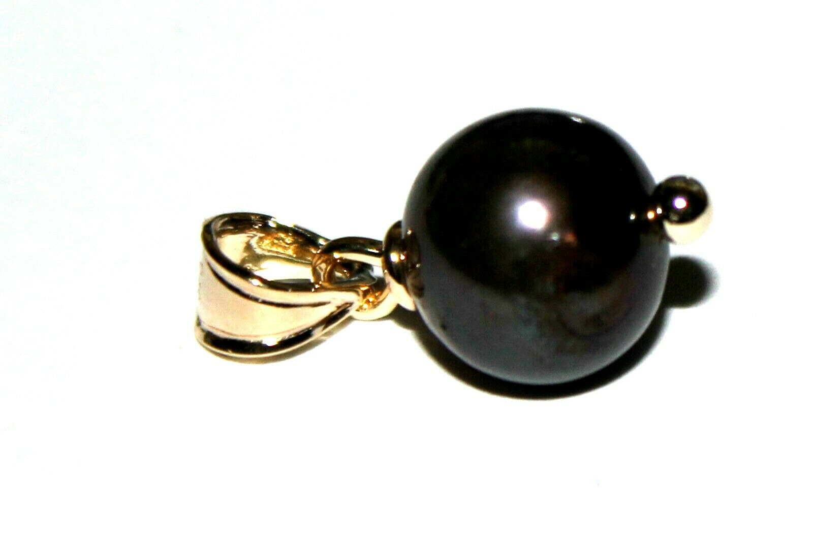 Genuine 9ct Solid Yellow, Rose or White Gold 10mm Freshwater Black Ball Pearl Pendant