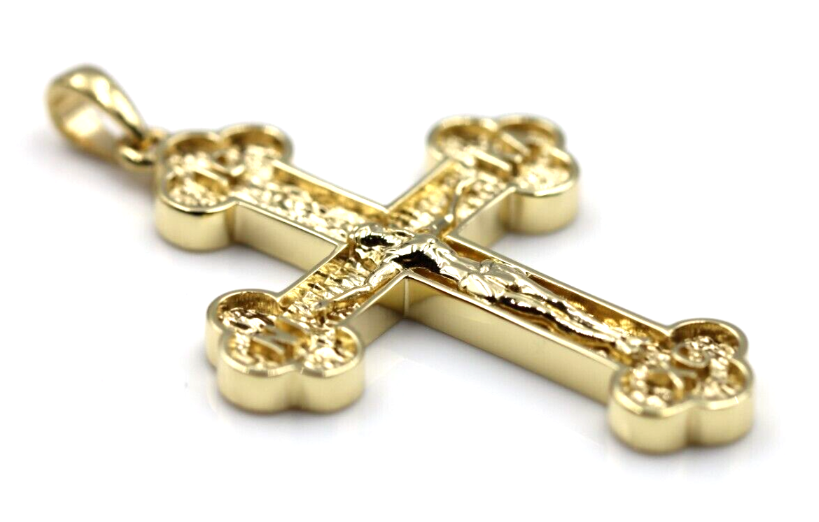 Genuine Heavy 18ct 18kt 750 Yellow, Rose or White Gold Byzantine Cross Pendant