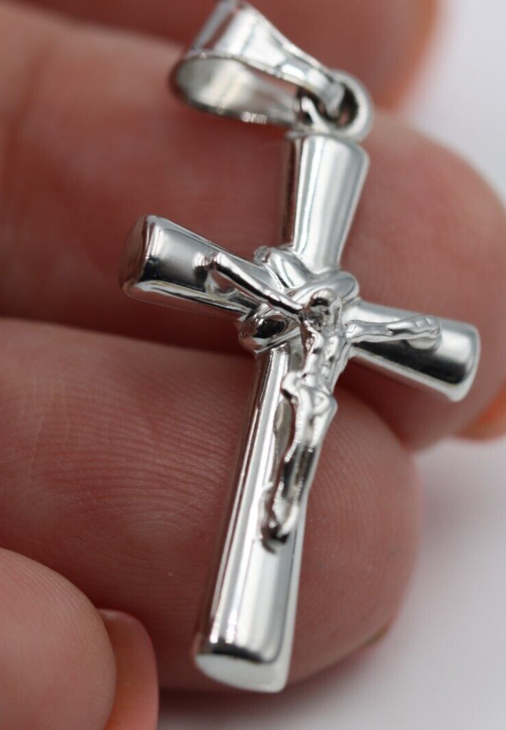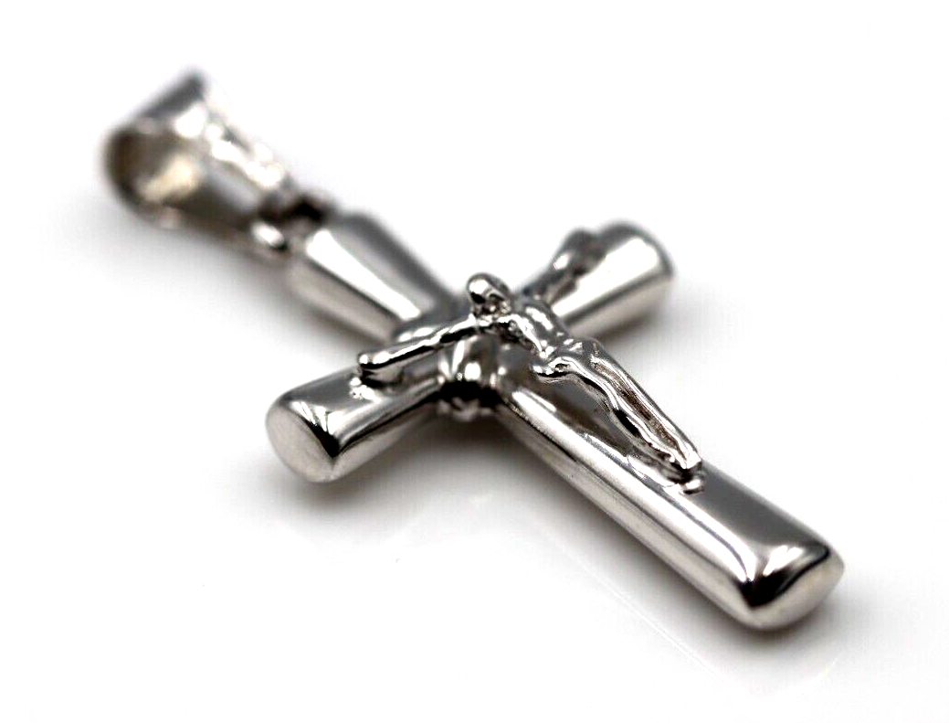 Genuine Hollow 14ct 14K White Gold Crucifix Cross Pendant *Free express post oz