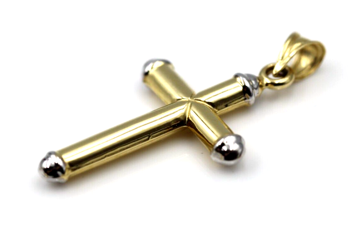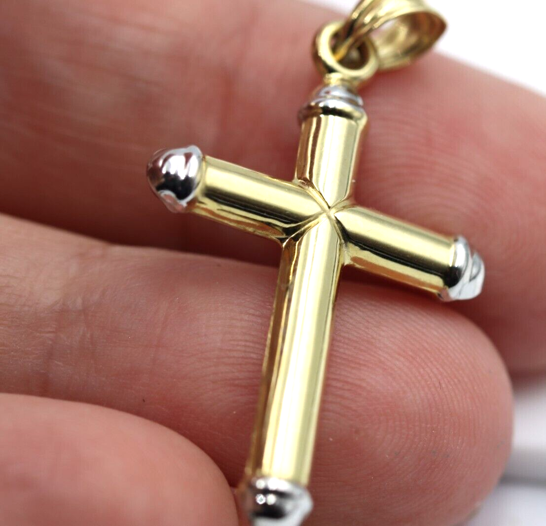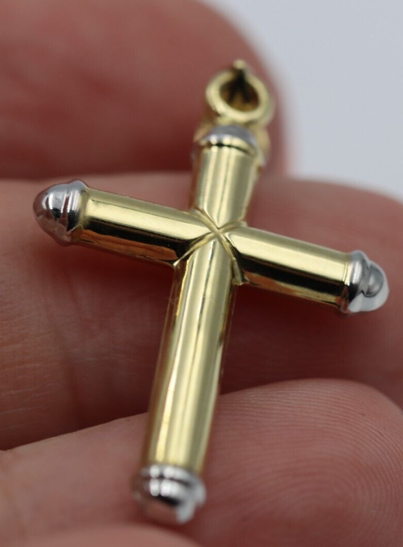 Genuine Hollow 14ct 14K Yellow + White Gold Cross Pendant - Free express post oz