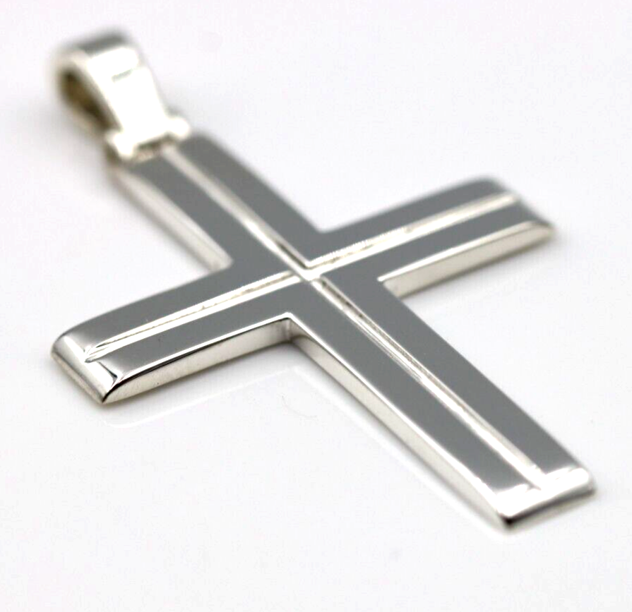 Genuine Large Ridged Sterling Silver 925 Cross Pendant