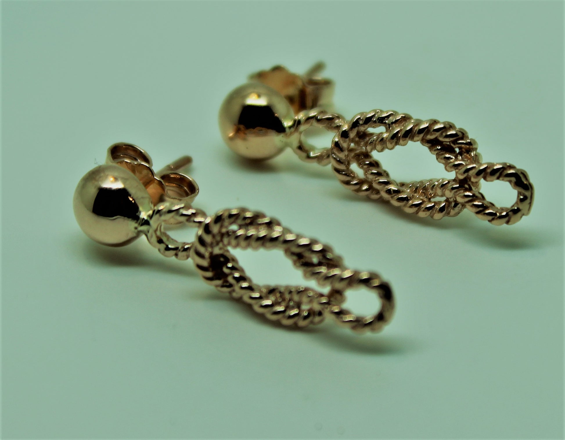 Genuine New 9ct 9k Yellow, Rose or White Gold Swirl Knot Rope Stud & Butterfly Dangle Earrings