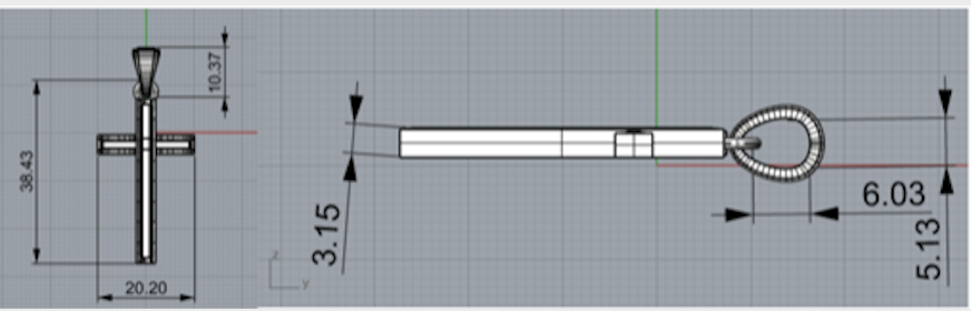 38mm x 20mm (size of cross) Bale size 10mm 3mm thick |