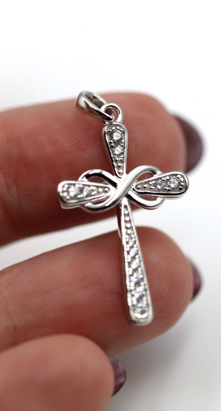 Genuine Sterling Silver 925 Cross Paved CZ Infinity Love Pendant