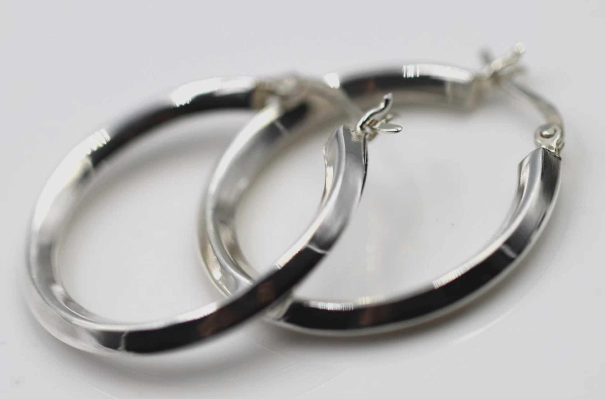 Genuine Sterling Silver 925 Hoops Earrings Plain Hollow 30mm