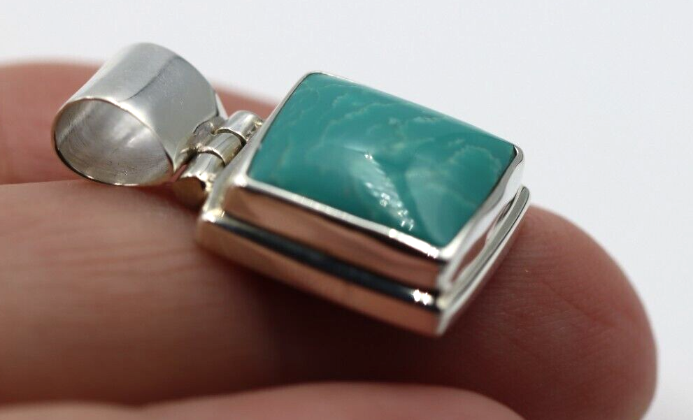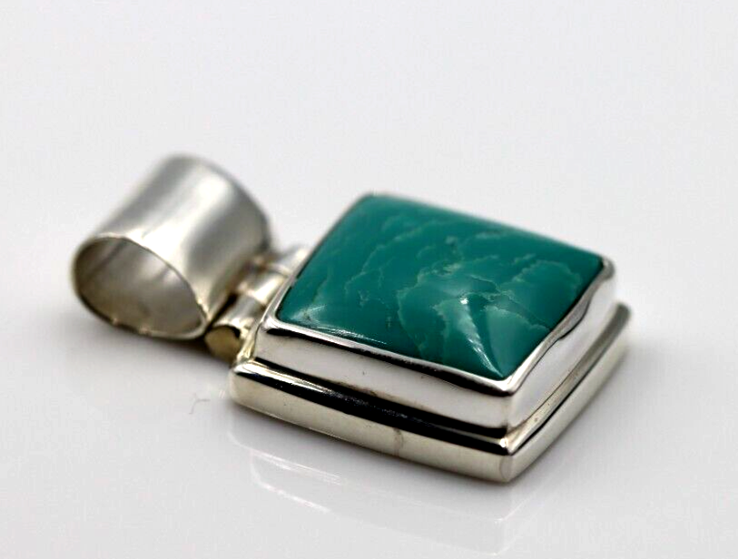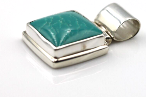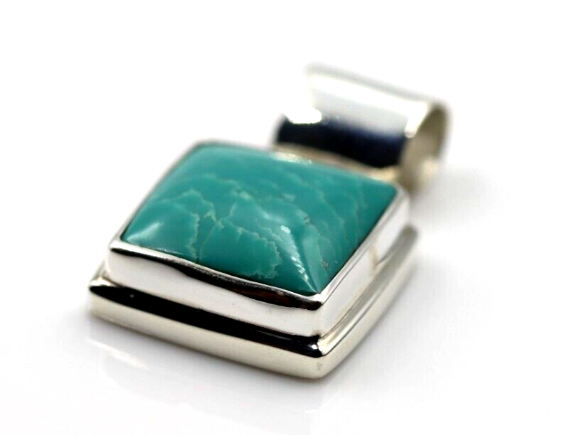 Genuine Sterling Silver Blue Turquoise Set Square Pendant