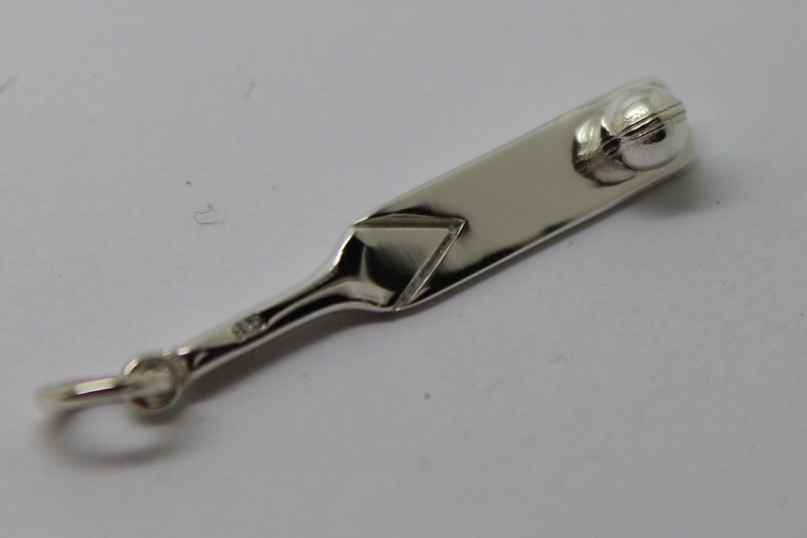 Genuine Sterling Silver Solid Large Size Cricket Bat And Ball Pendant or Charm