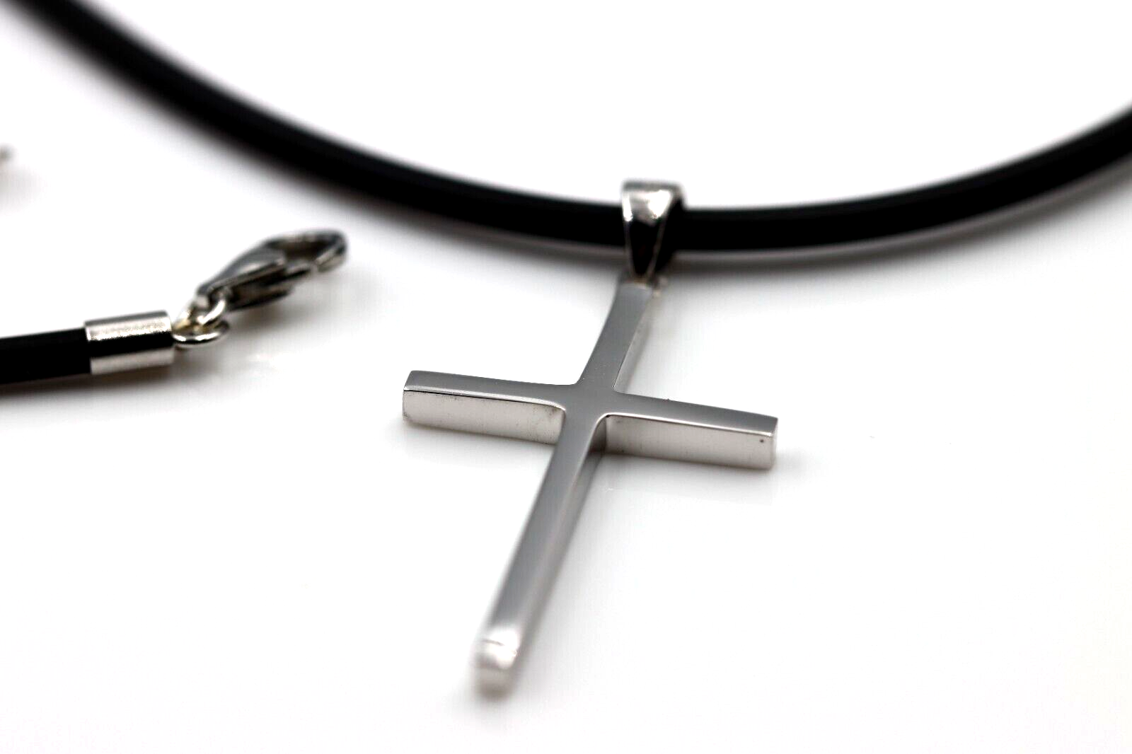 29mm x 16mm cross size 4mm bail 1.9mm thick 50cm chain Neoprene 2mm (sterling silver clasp) |