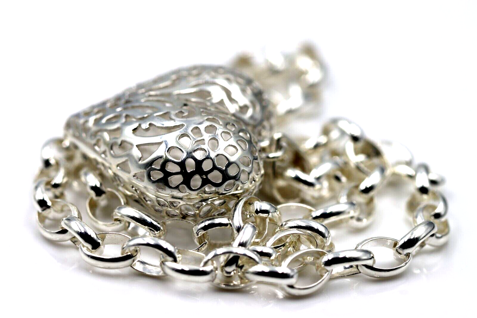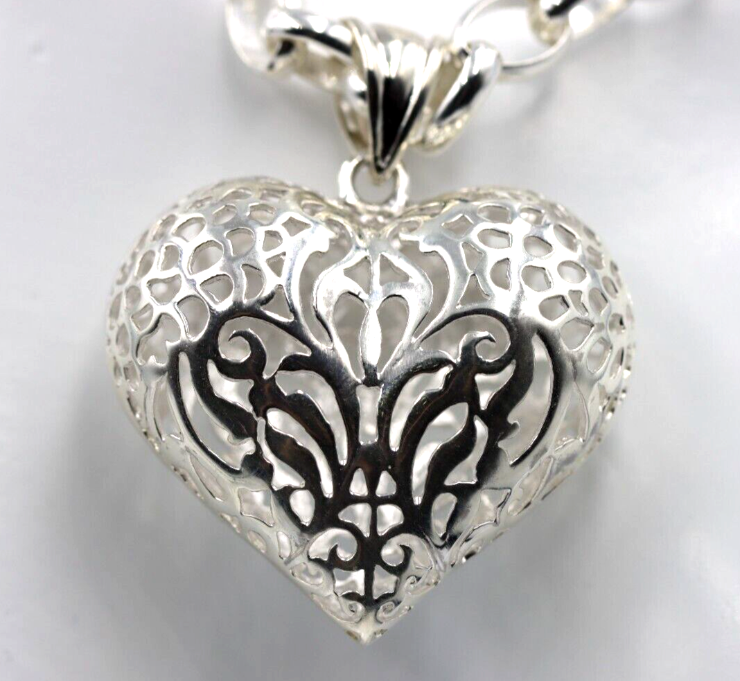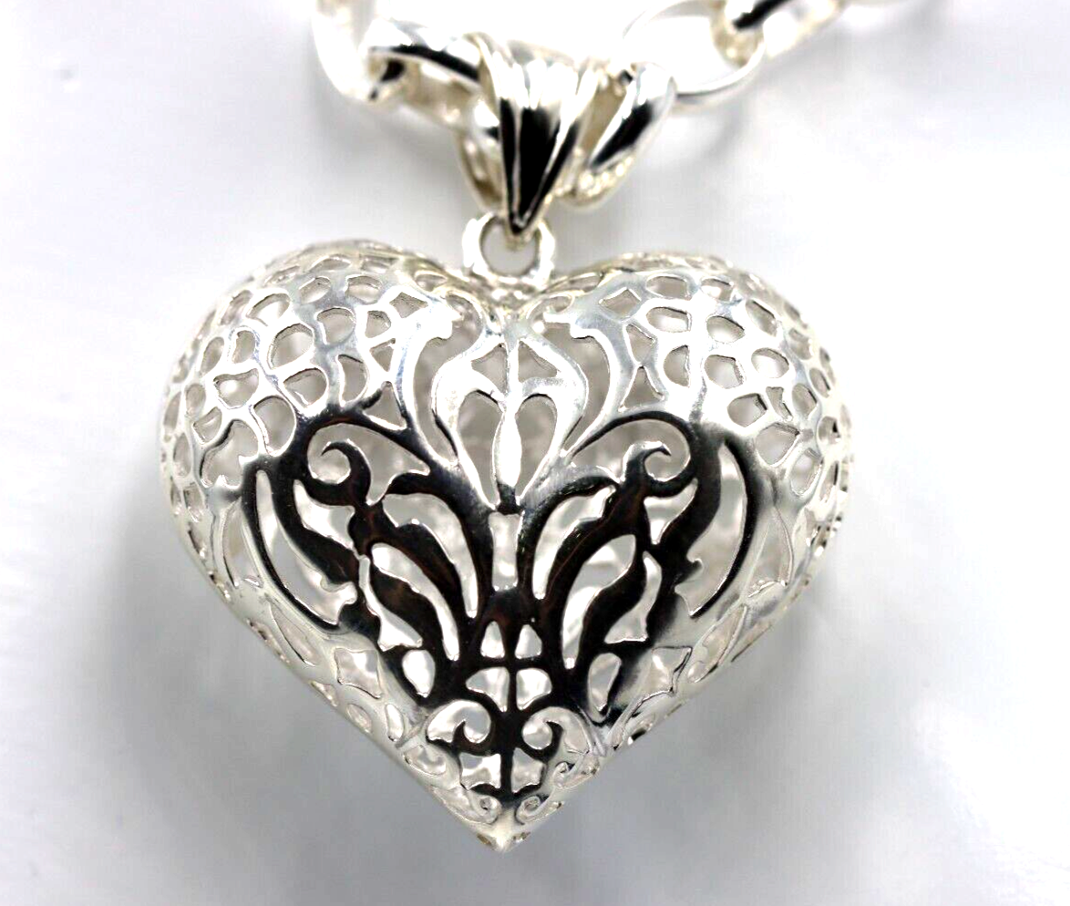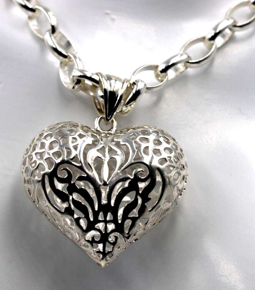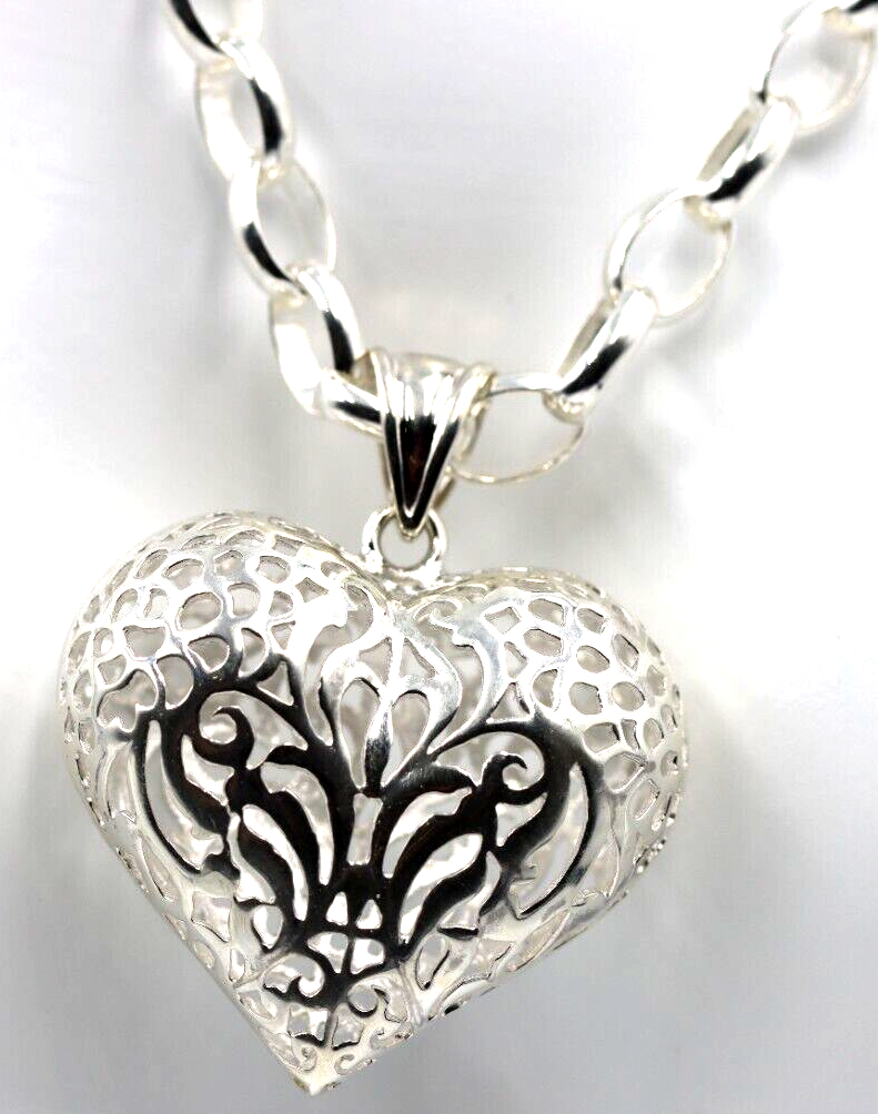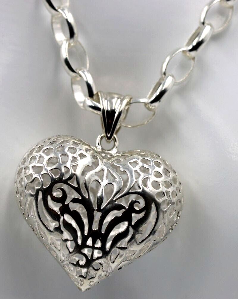 Heavy Sterling Silver 50cm Belcher Necklace & Filigree Heart Pendant