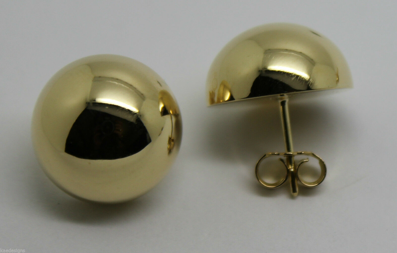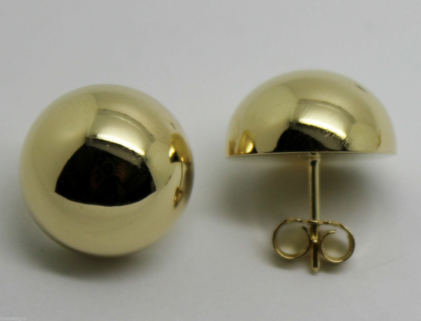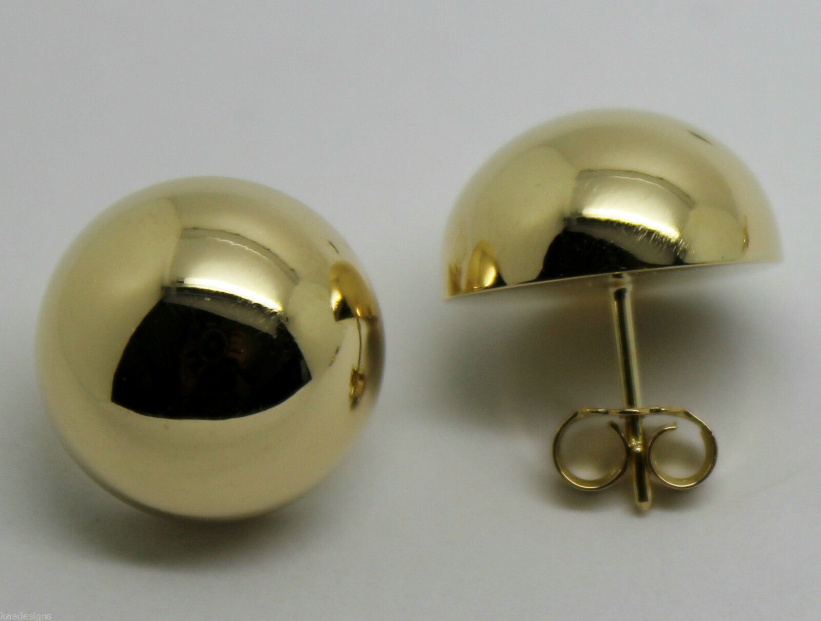Genuine 9ct 9k Yellow Or White Or Rose Gold 375 14mm Half Ball Hook Earrings