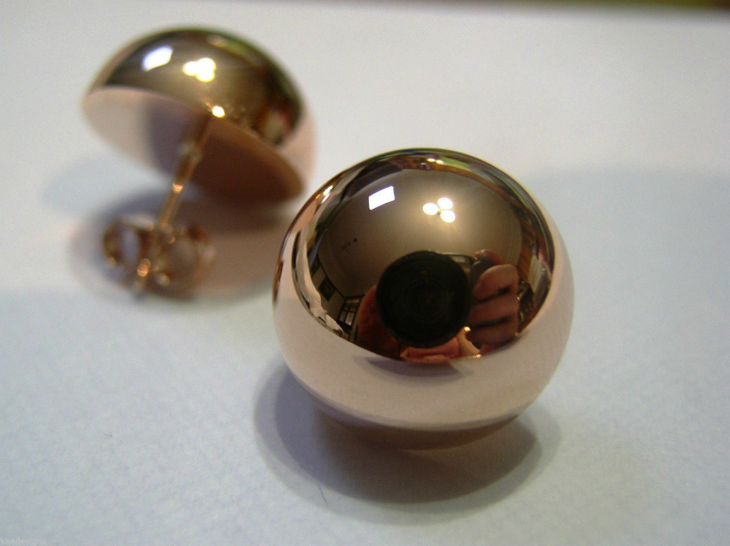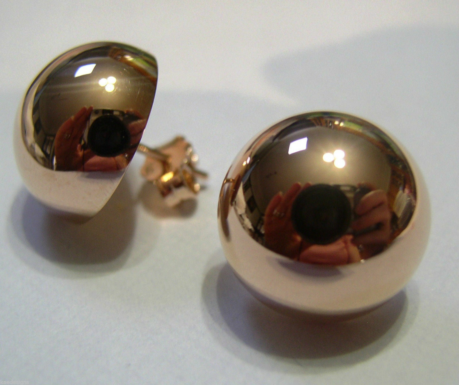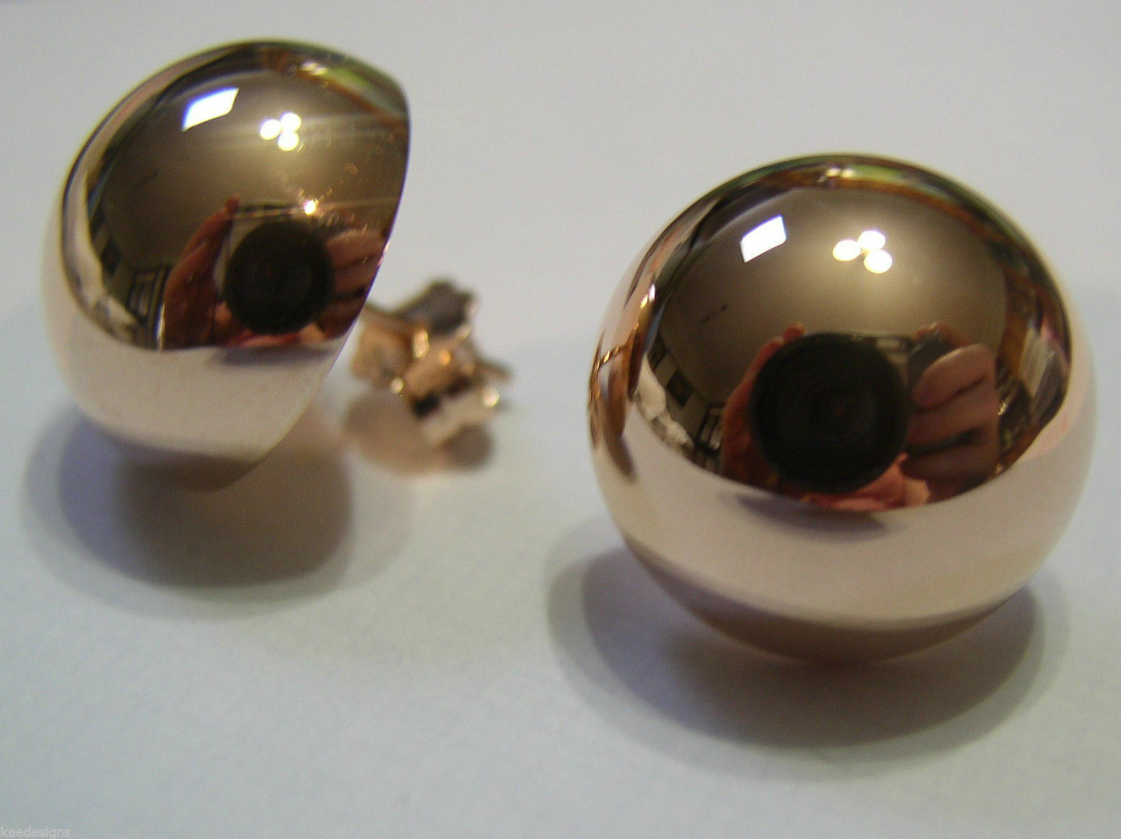 Genuine 9ct 9k Yellow Or White Or Rose Gold 375 14mm Half Ball Hook Earrings