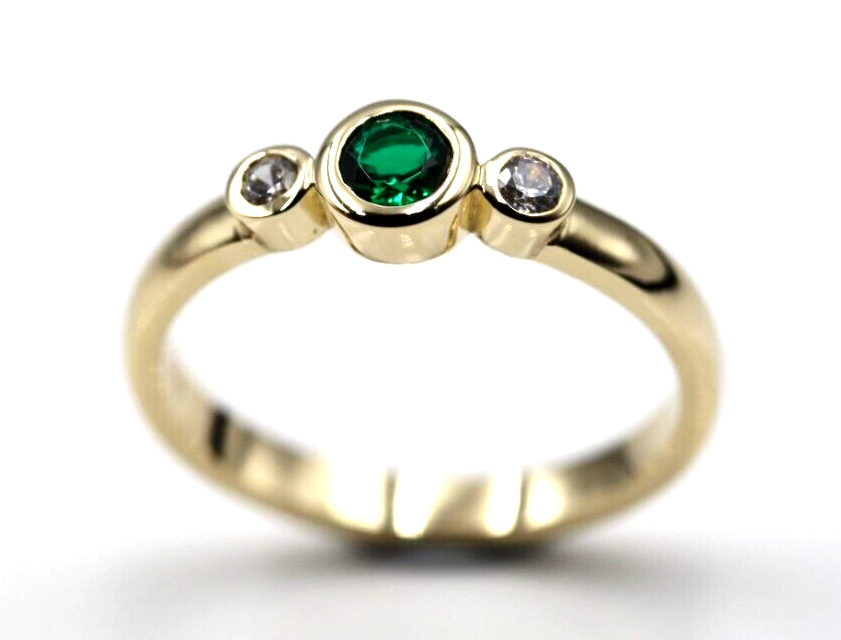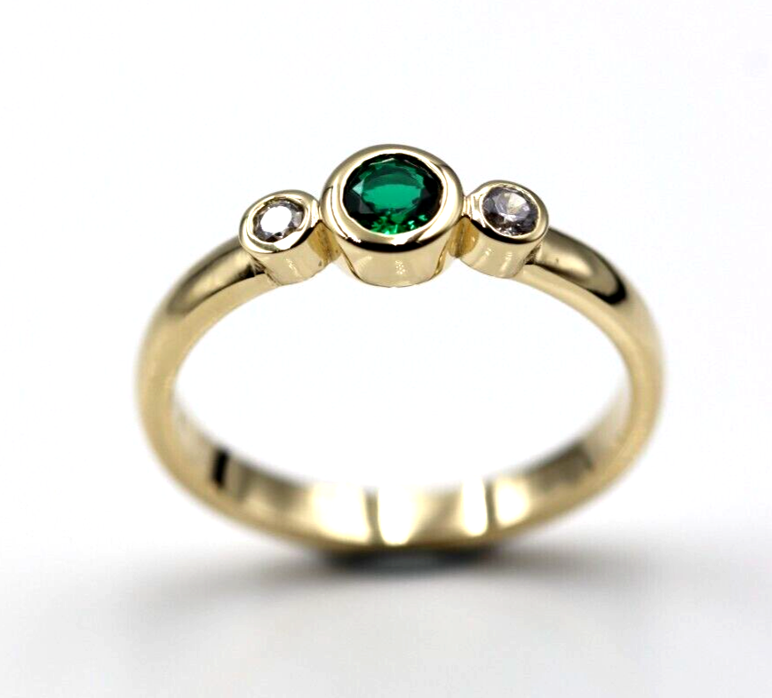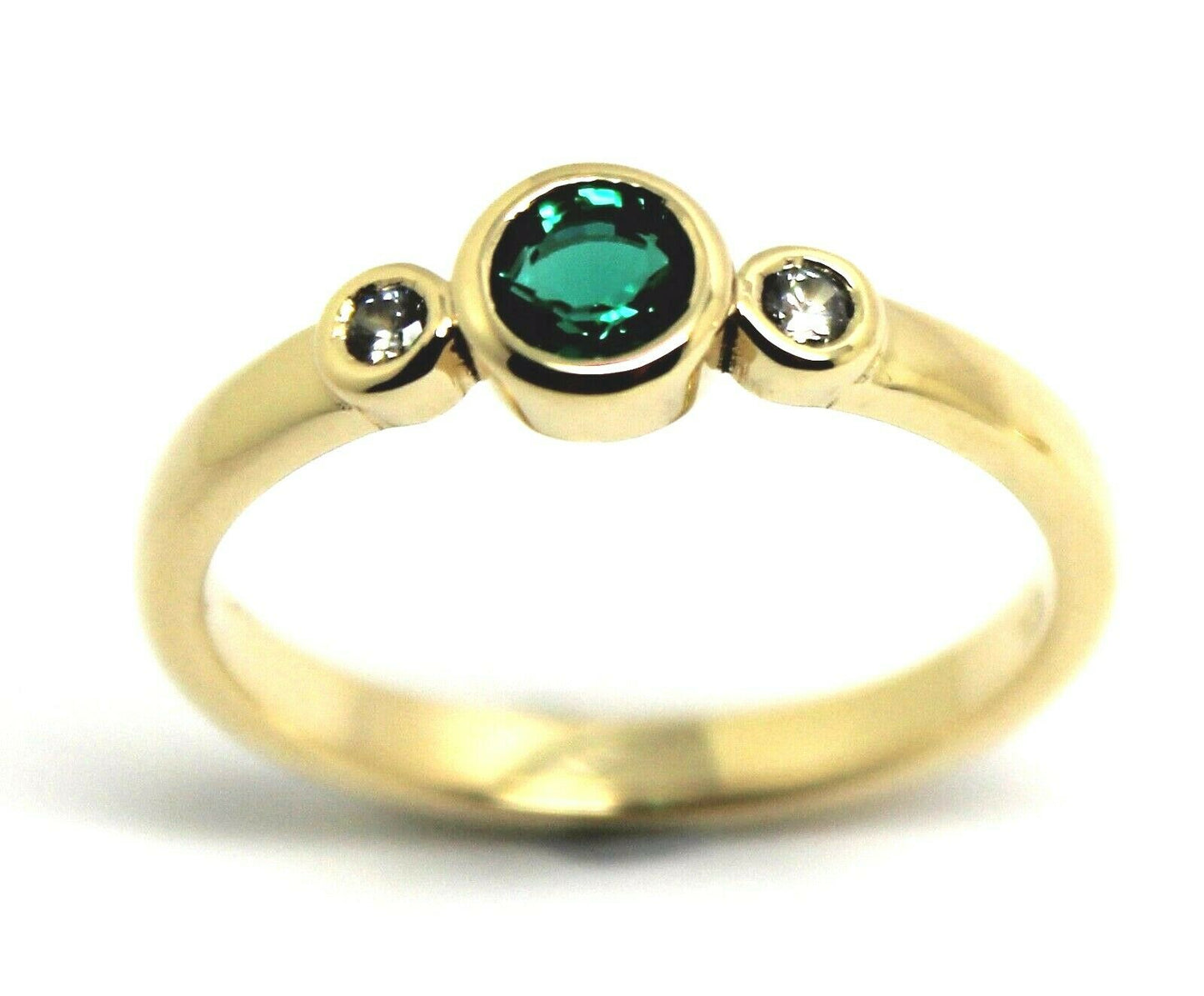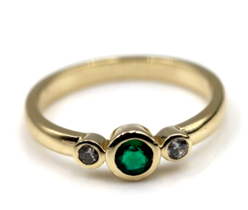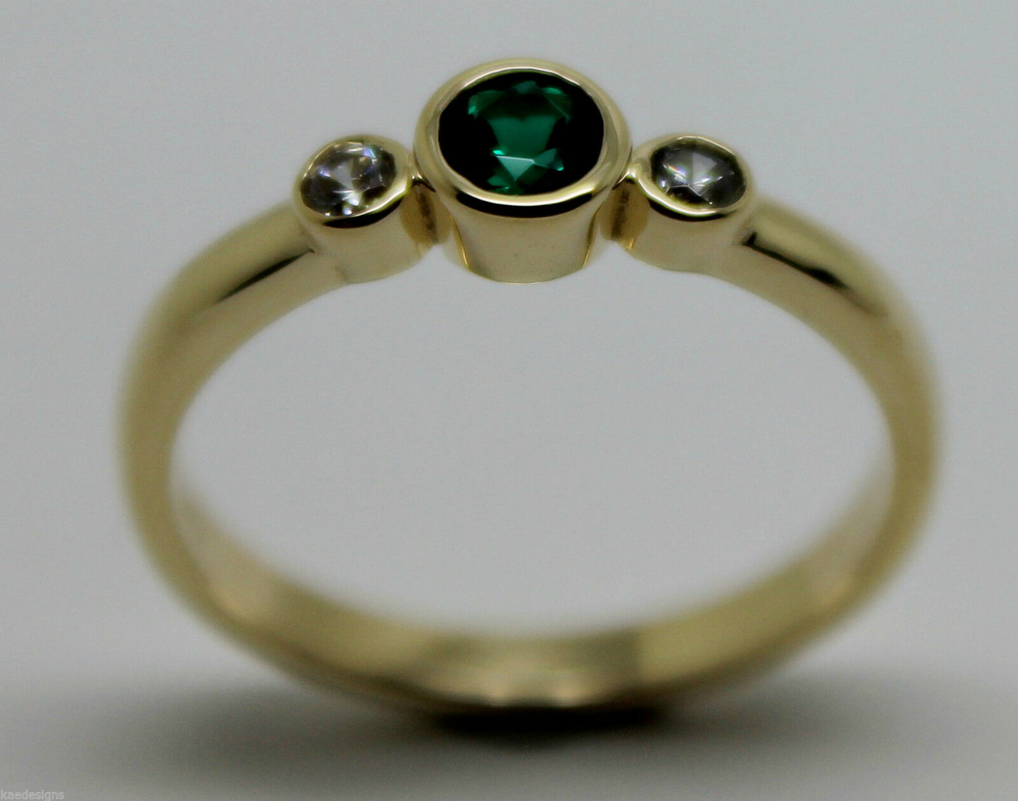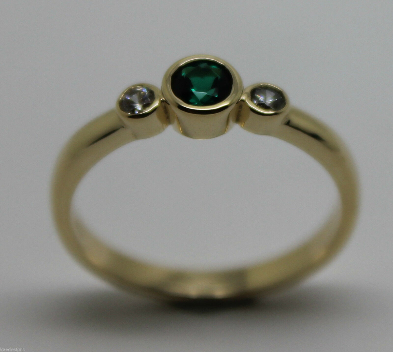 Size O Genuine 9ct 9kt Yellow, Rose or White Gold Trilogy & Emerald Ring
