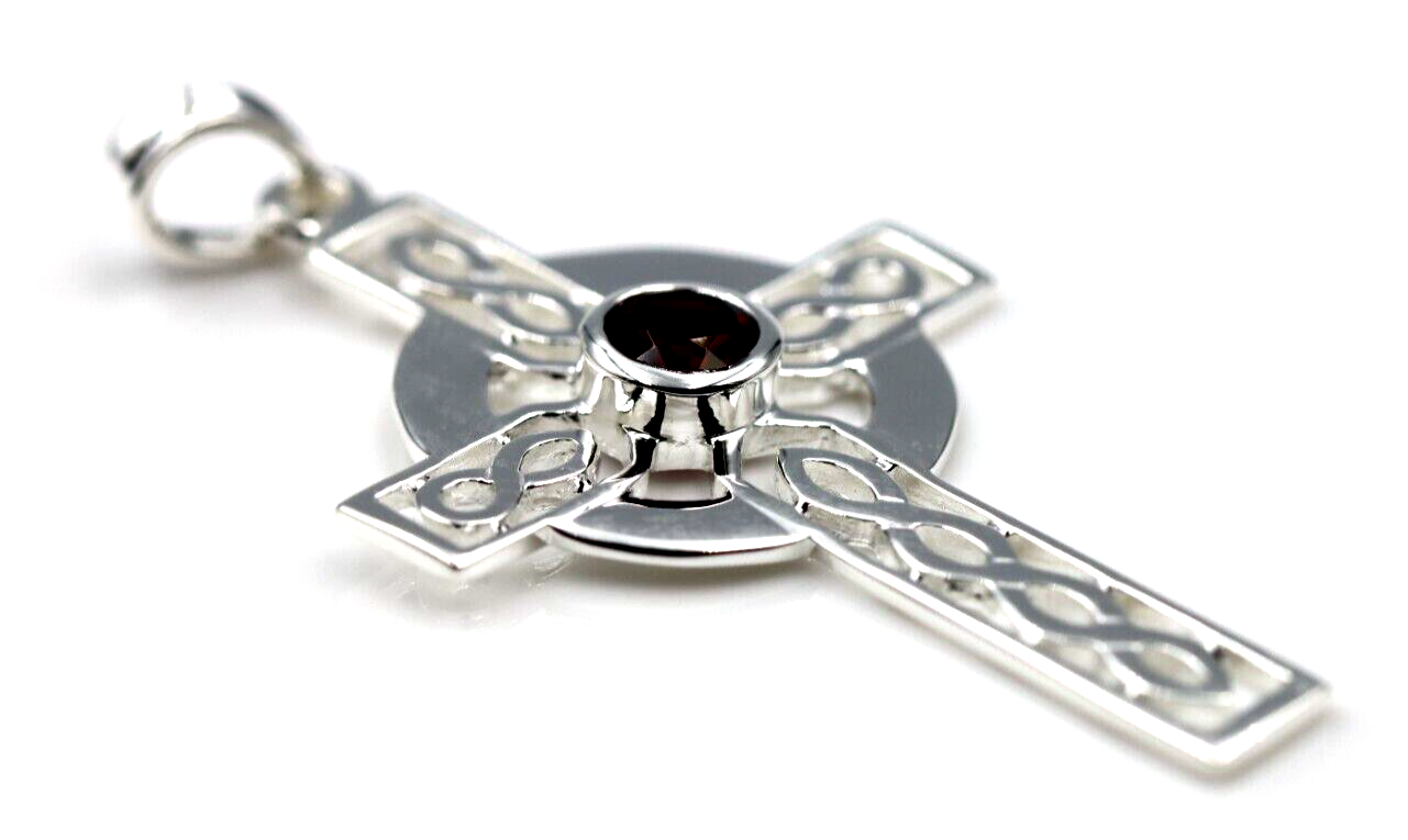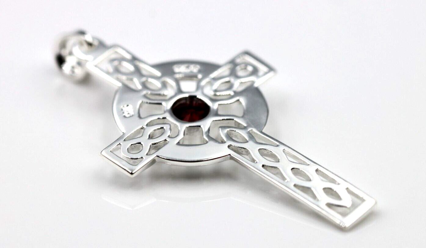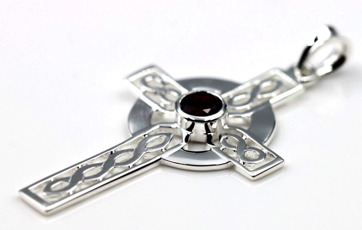 Kaedesigns Large Sterling Silver 925 Garnet Celtic Cross Pendant