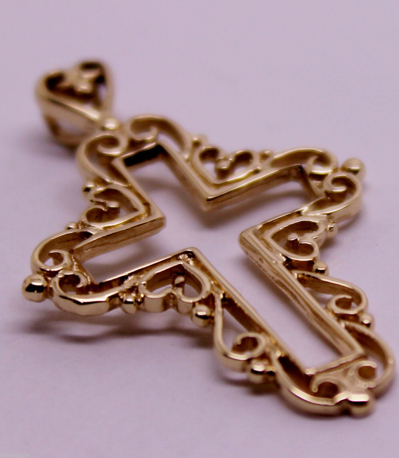 Kaedesigns, New 9ct Yellow Or Rose Or White Gold 375 Filigree Heart Cross Pendant