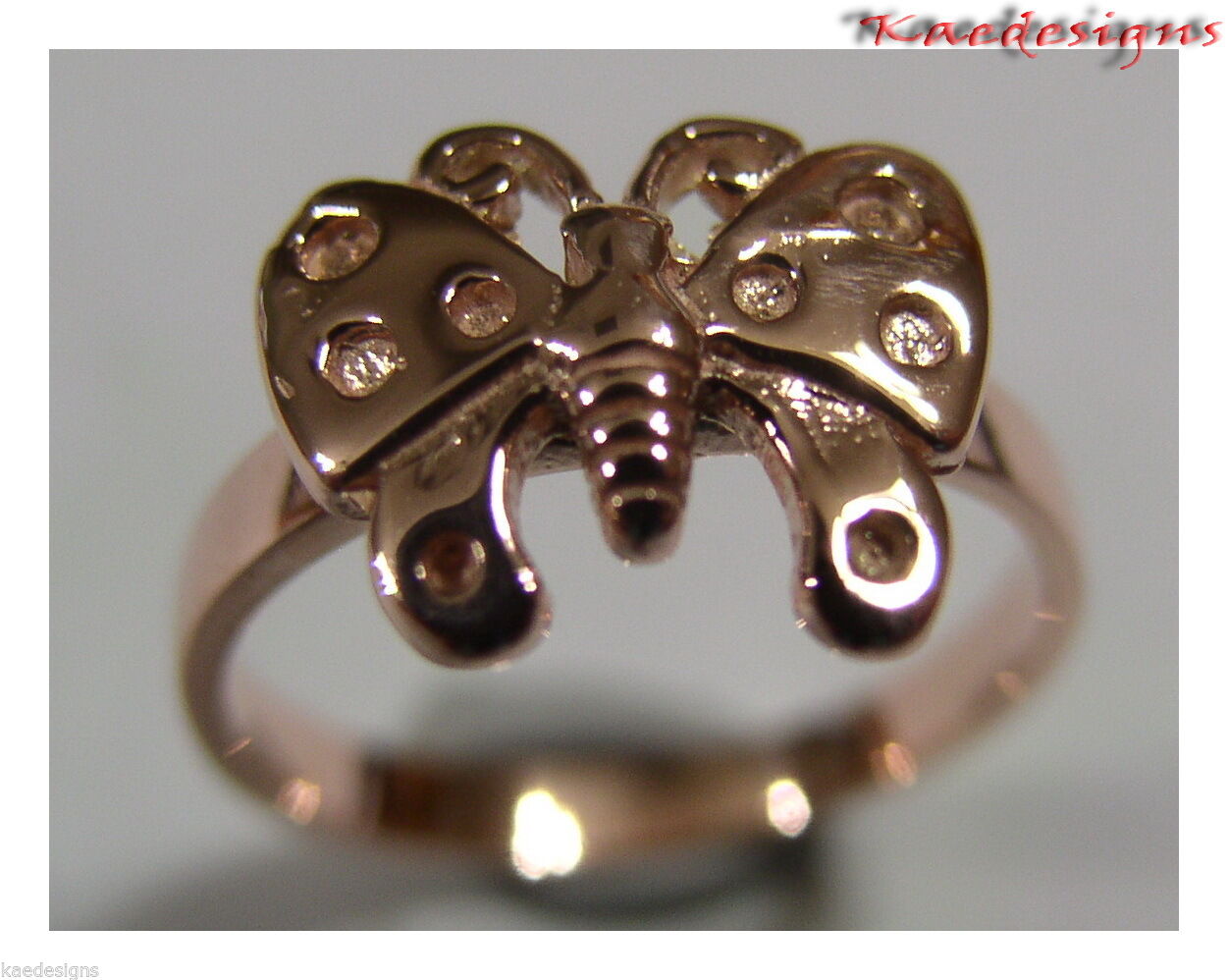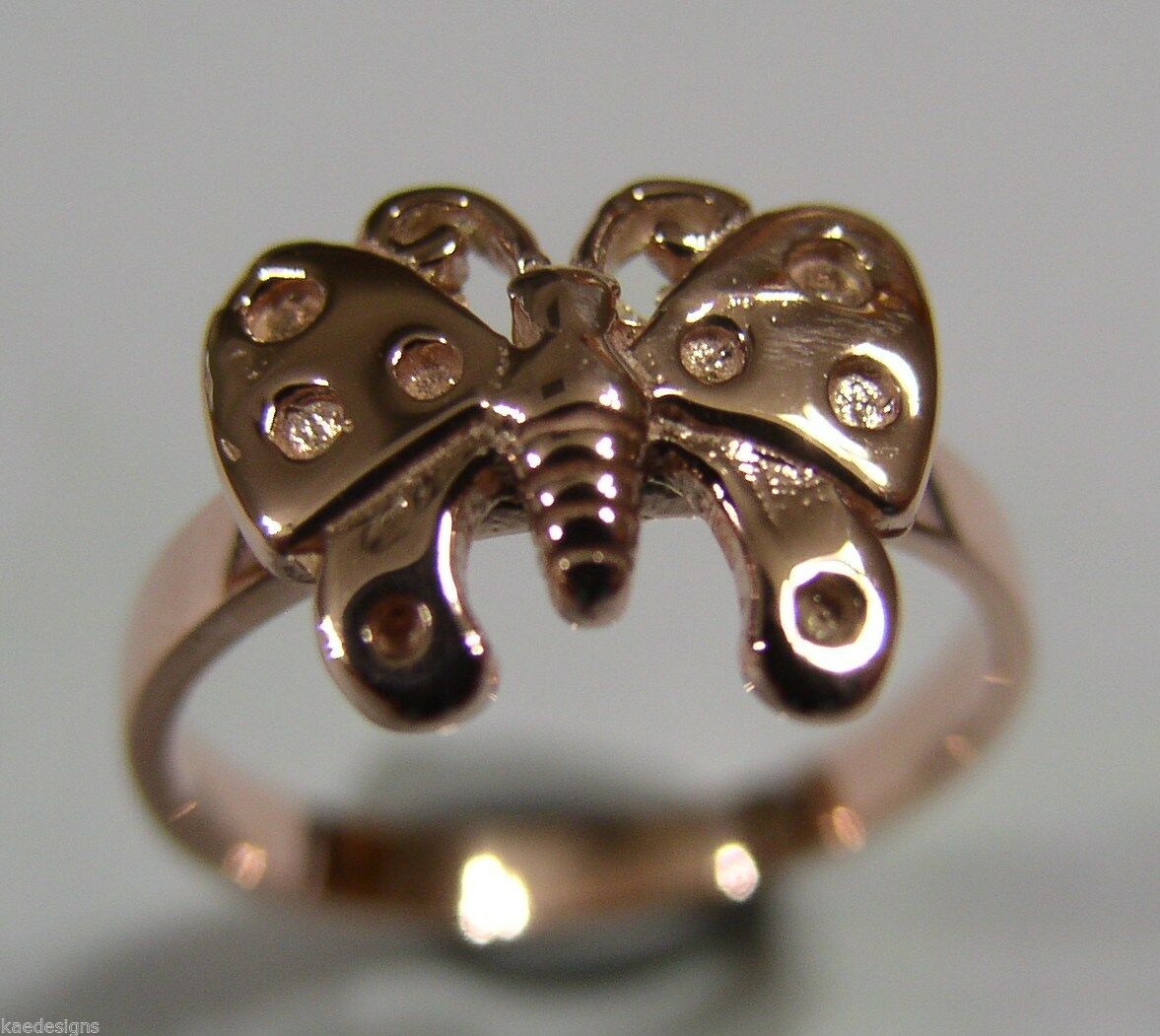 New Genuine Solid 9ct White Or Rose Or Yellow Gold Butterfly Ring Choose Size