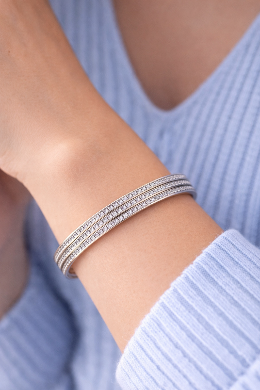 69mm -hinged bangle (outside diameter) 8.8mm wide - Stones are cubic zirconias |