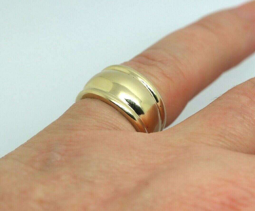 Size J Genuine 9ct Solid Yellow Gold Ridged Heavy 10mm Dome Ring *Free express post in oz
