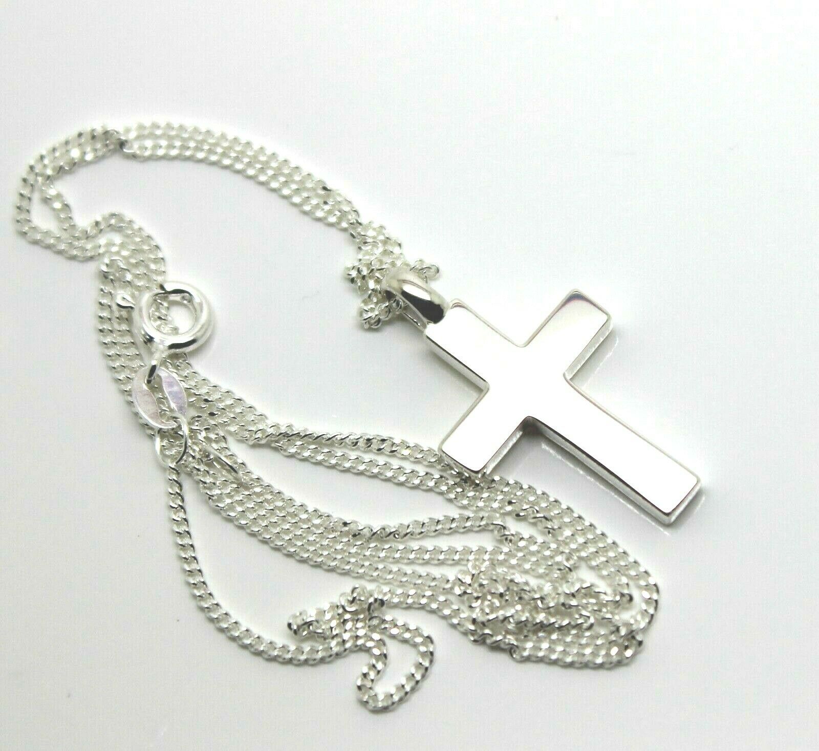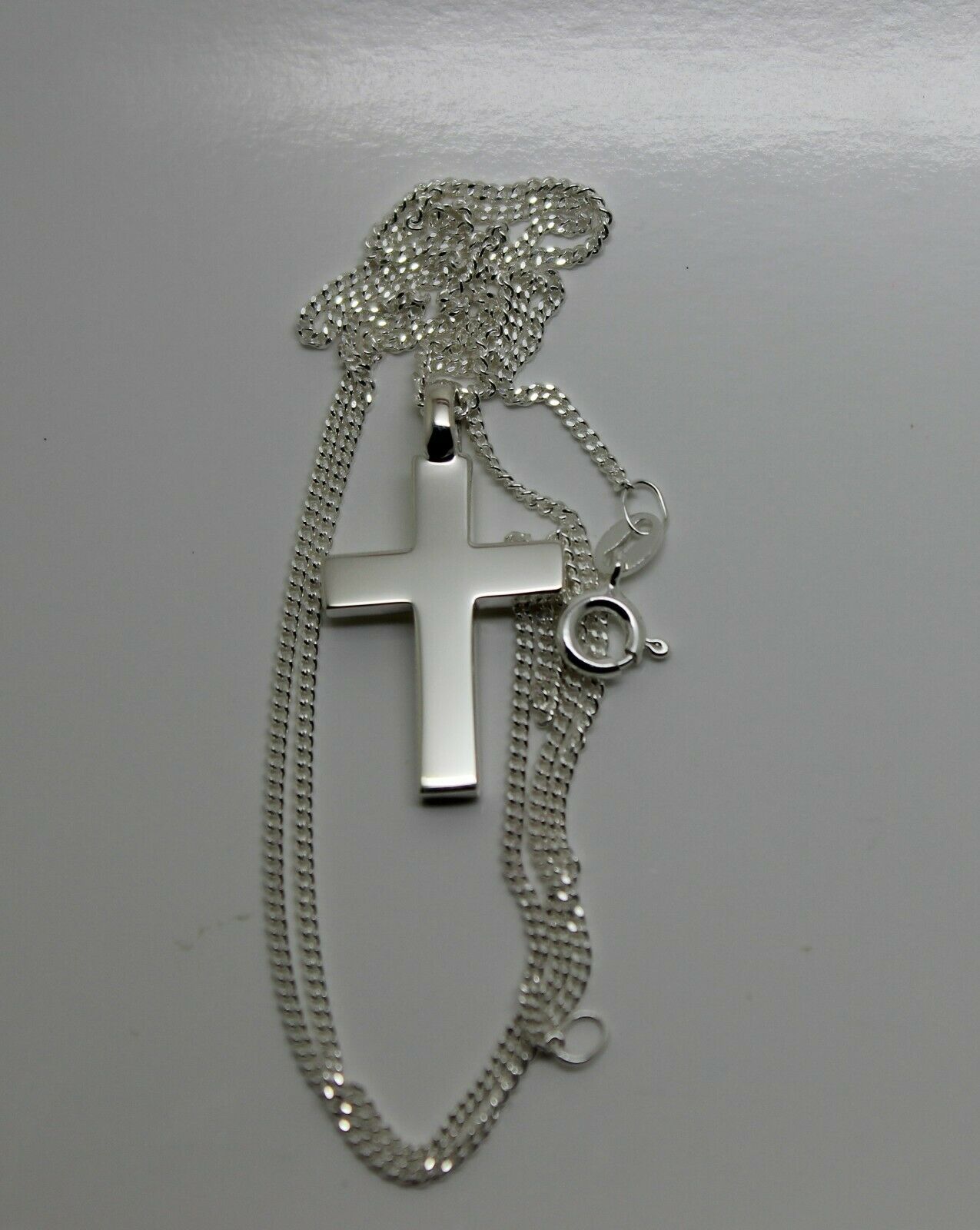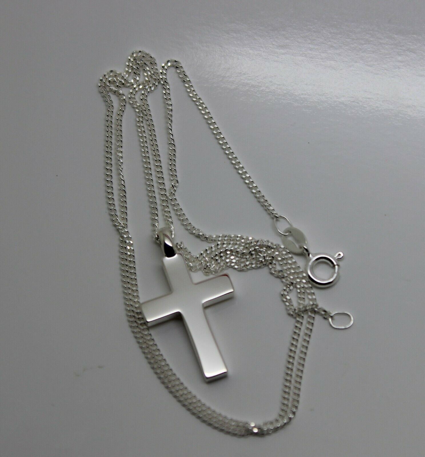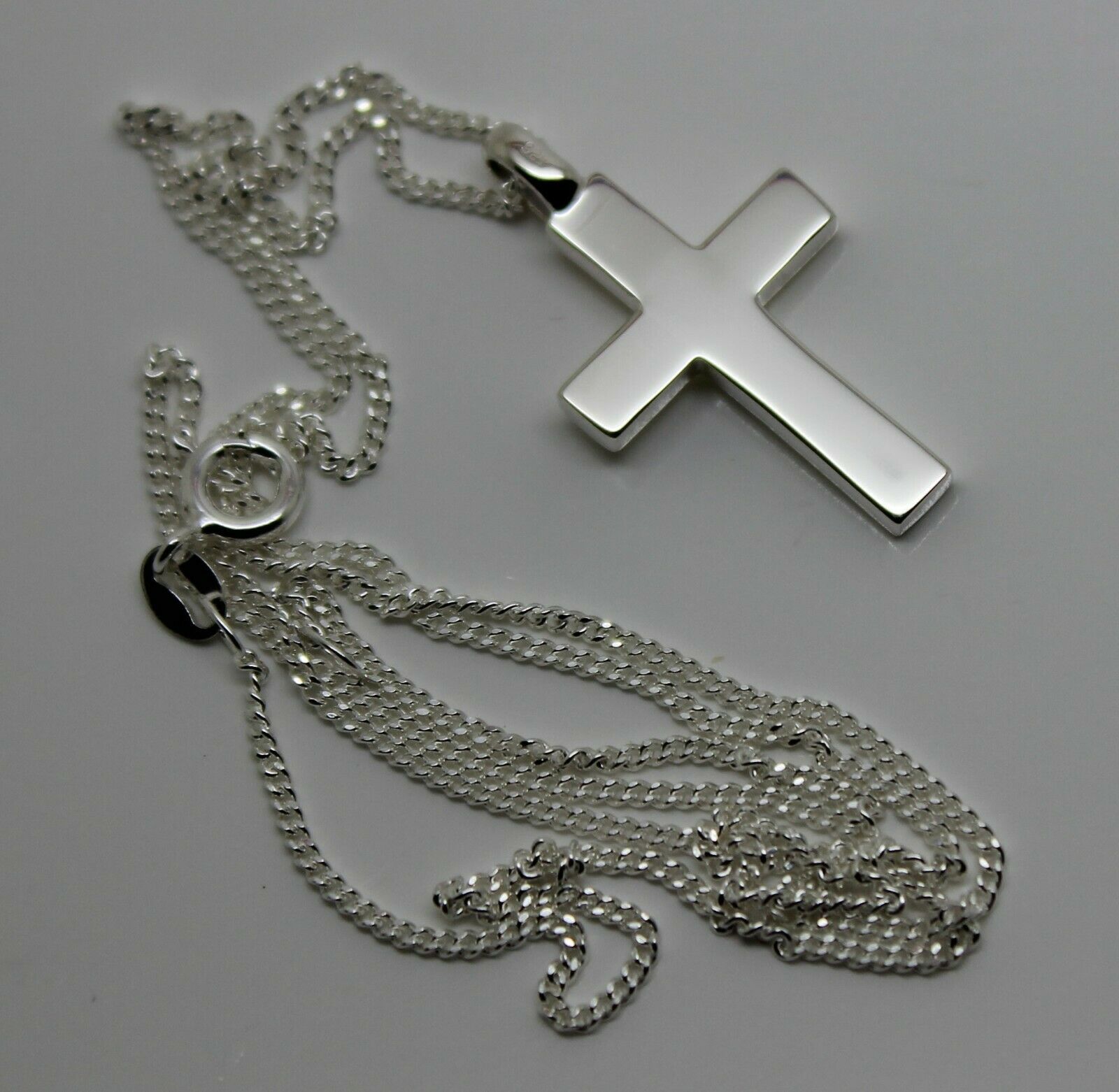 Solid New Sterling Silver 925 Plain Cross Pendant & 55cm Kerb Chain Necklace