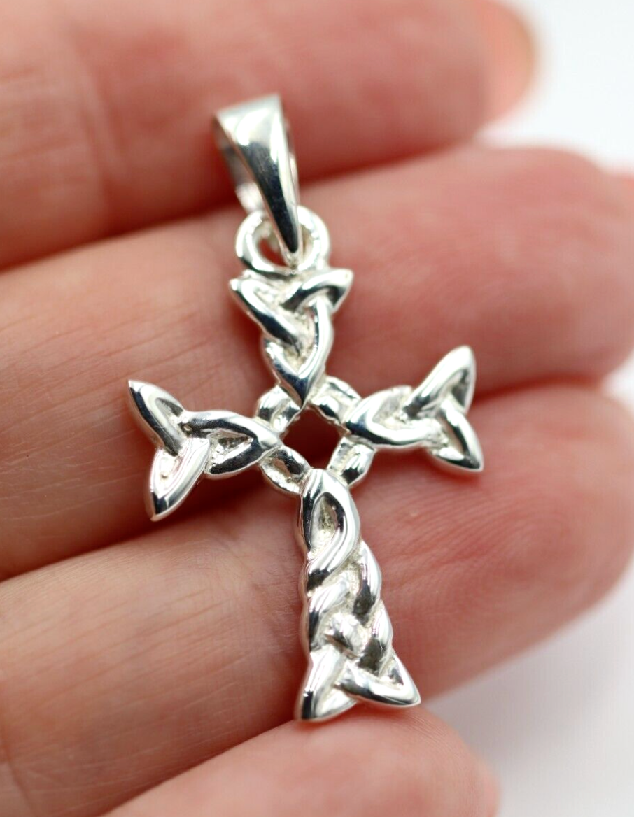 Sterling Silver 925 Celtic Knot Braid Cross Pendant