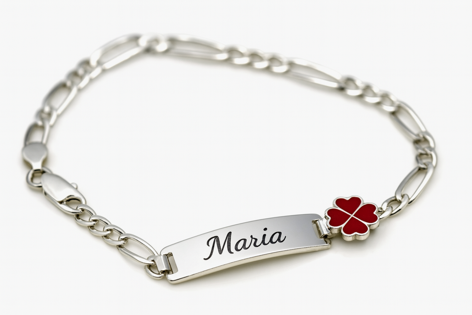 Sterling Silver 925 Childs Red Clover Identity ID Bracelet 17cm long
