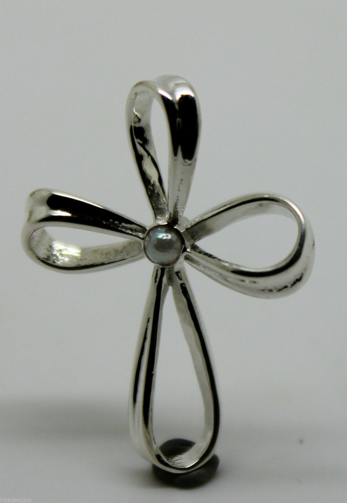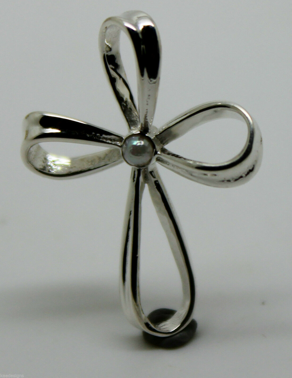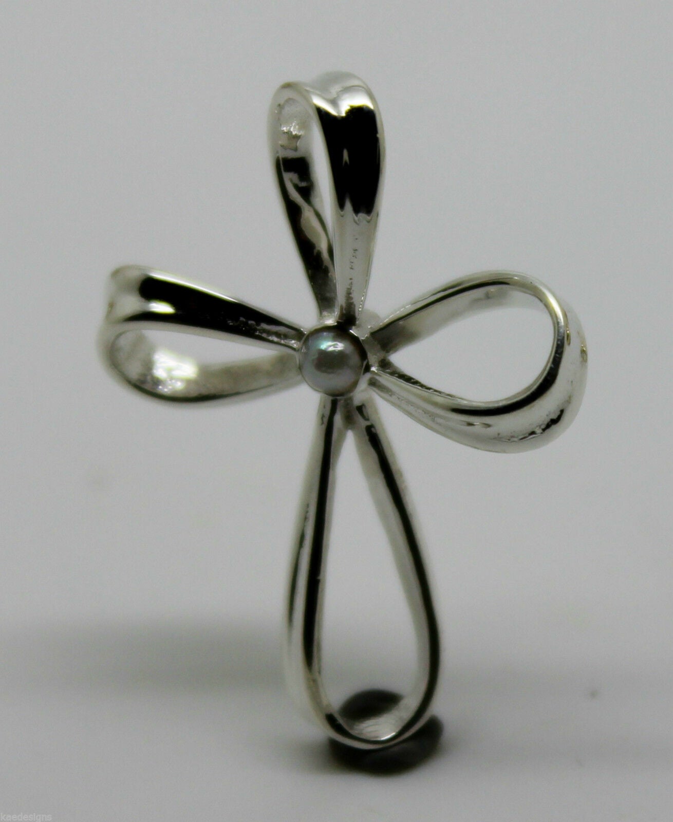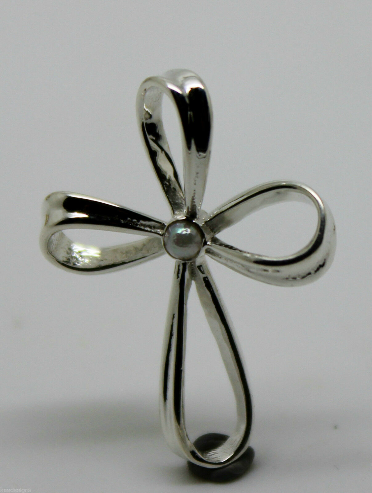 Genuine Sterling Silver 925 Cross Pearl Set Cross Pendant