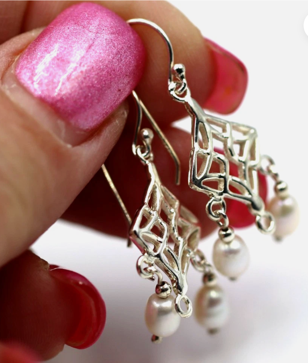 Sterling Silver 925 Freshwater Oval Pearl Chandelier Hooks Earrings