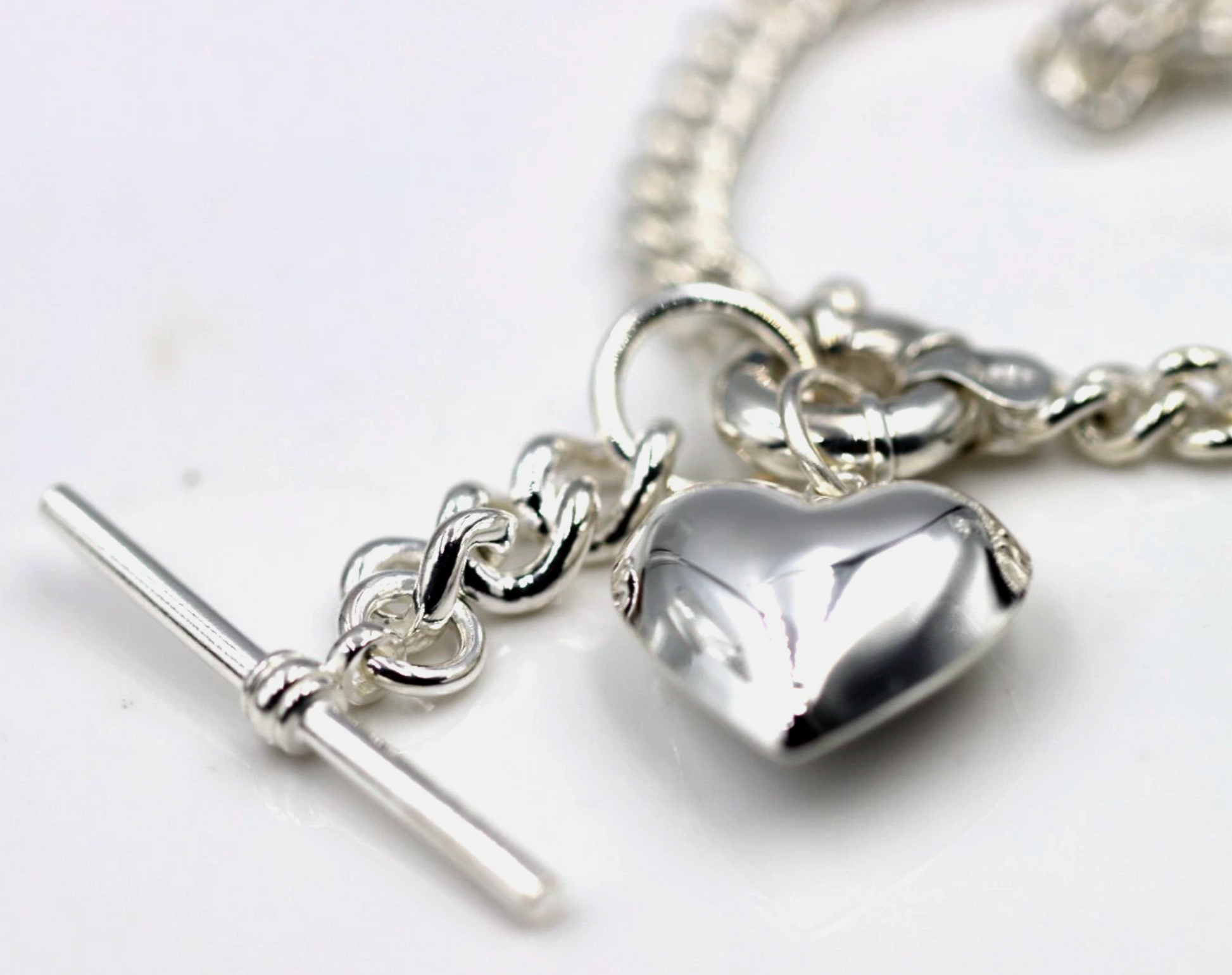 Heavy Sterling Silver 925 60cm Curb Kerb Chain Necklace 5.3mm + T-Bar + Heart