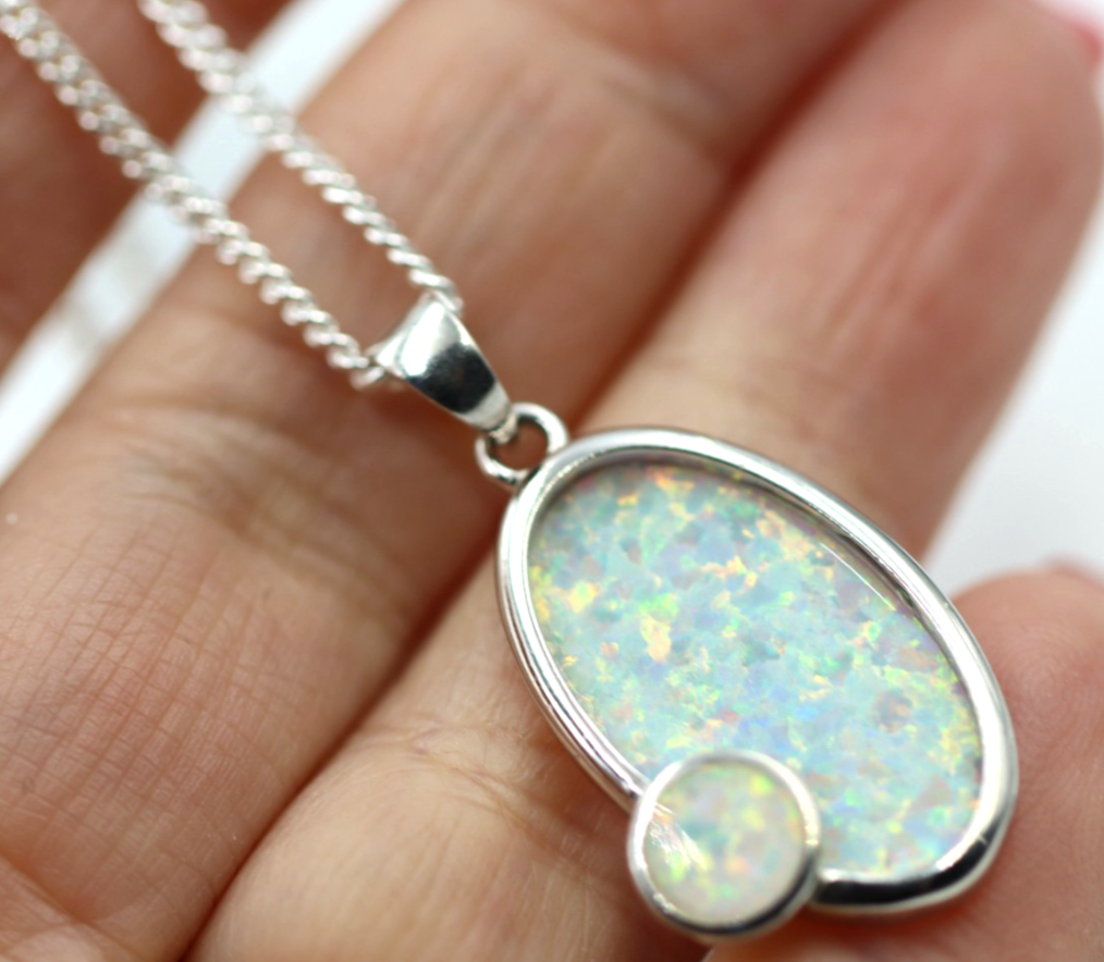 Sterling Silver 925 Oval Syn Opal Pendant + 50cm Necklace