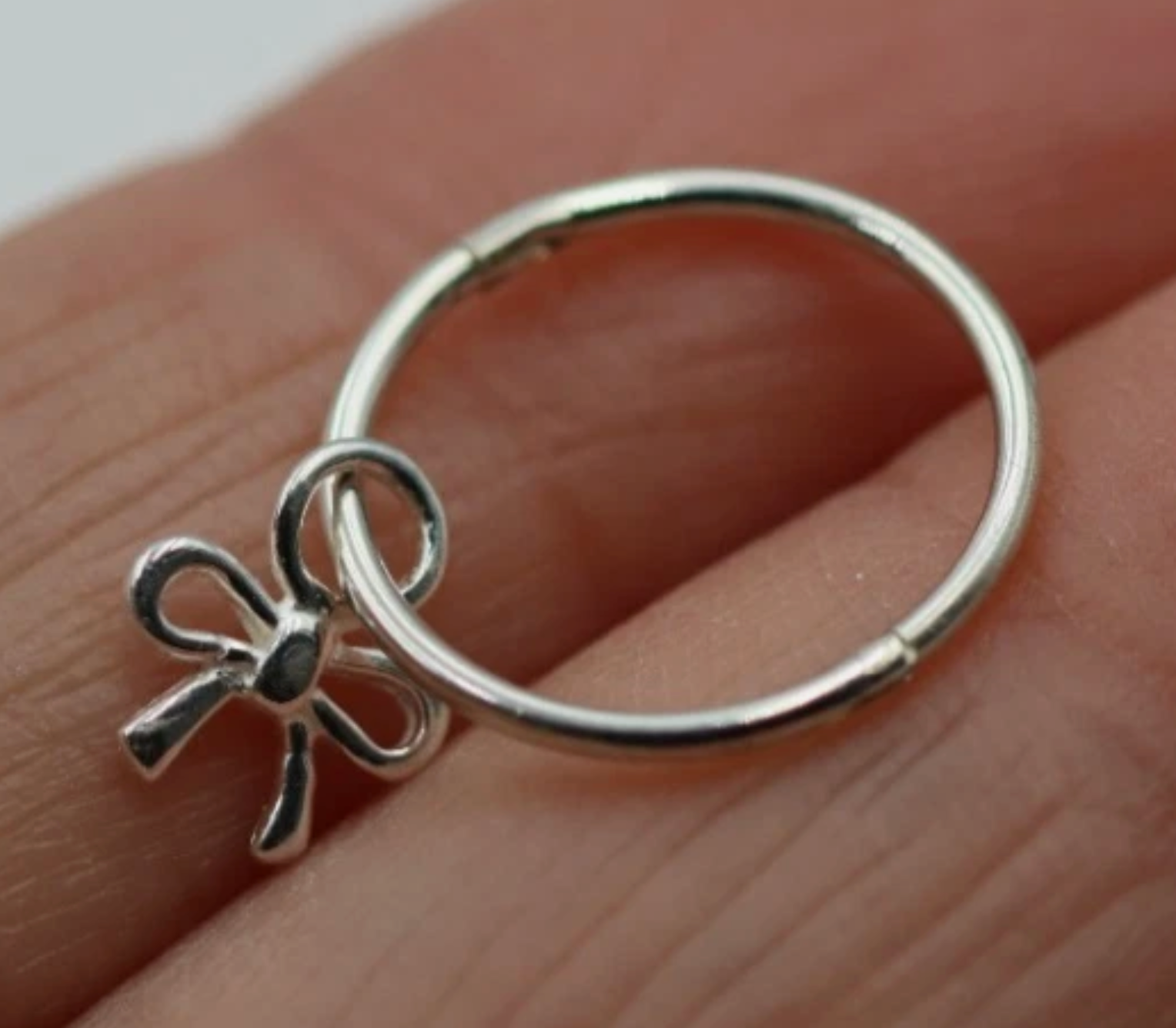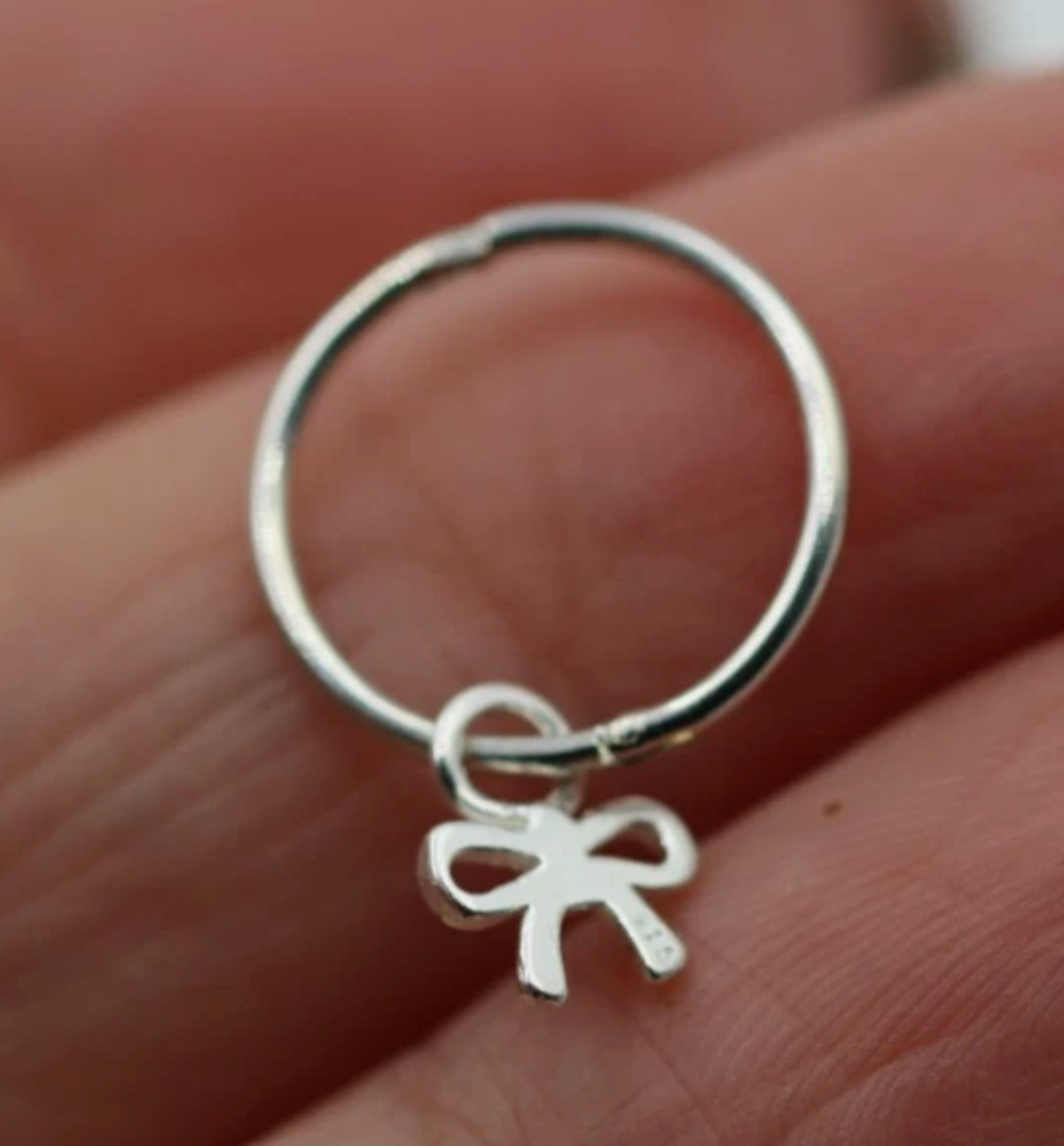 Sterling Silver 925 Sleepers Hinged Hoops Earrings + Bow Charms